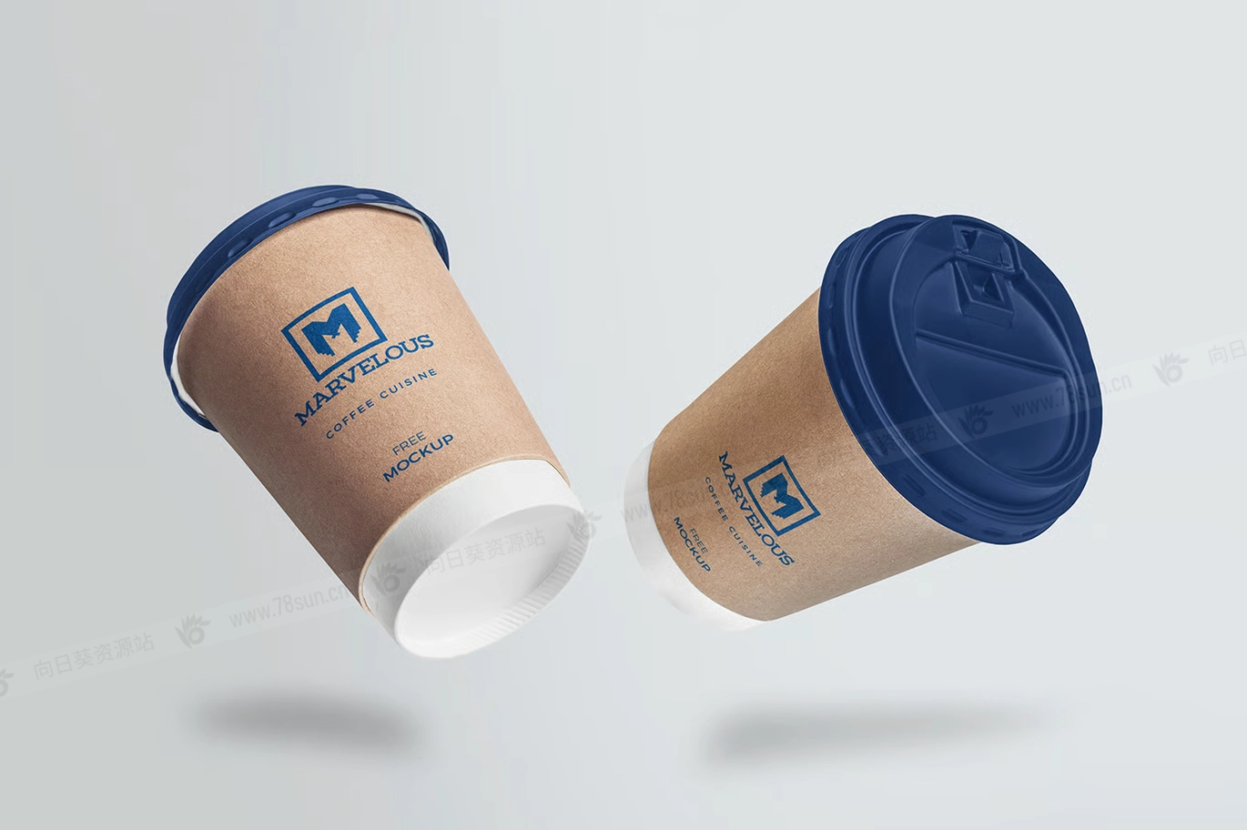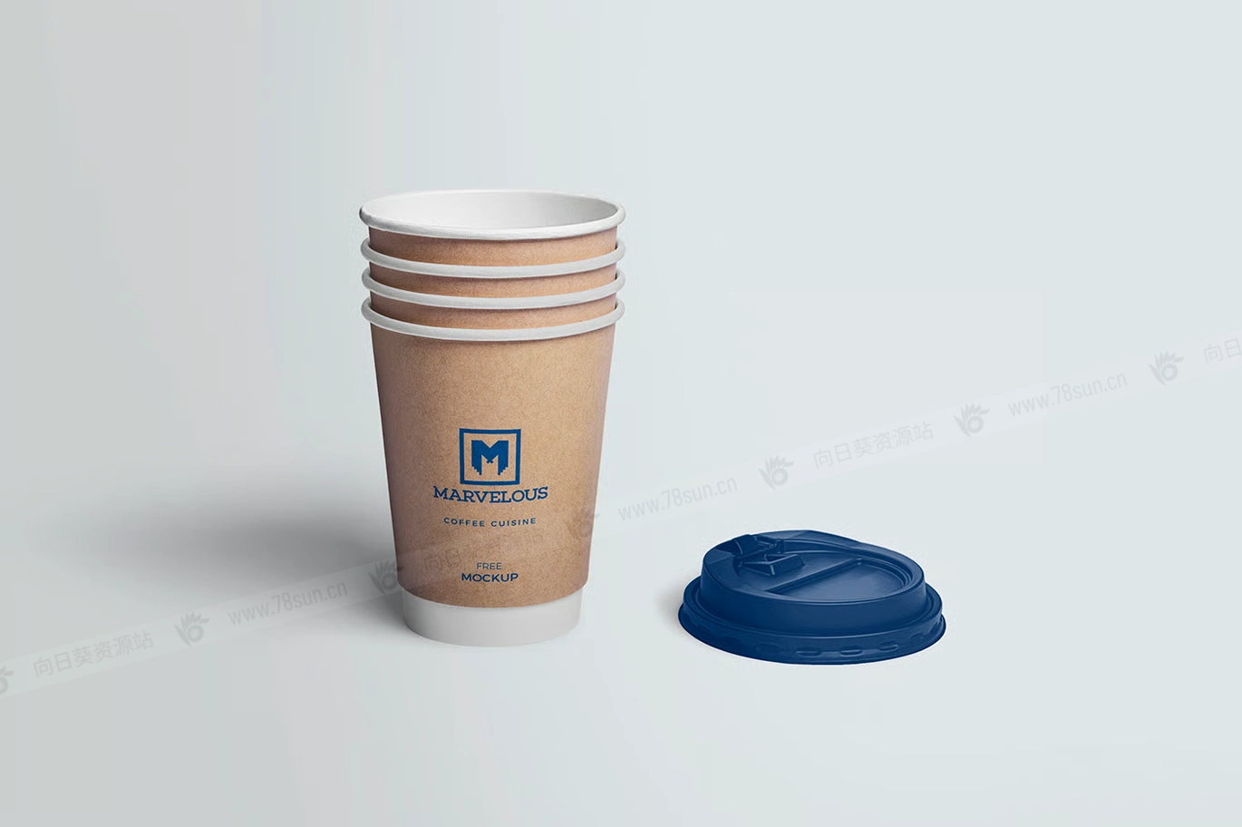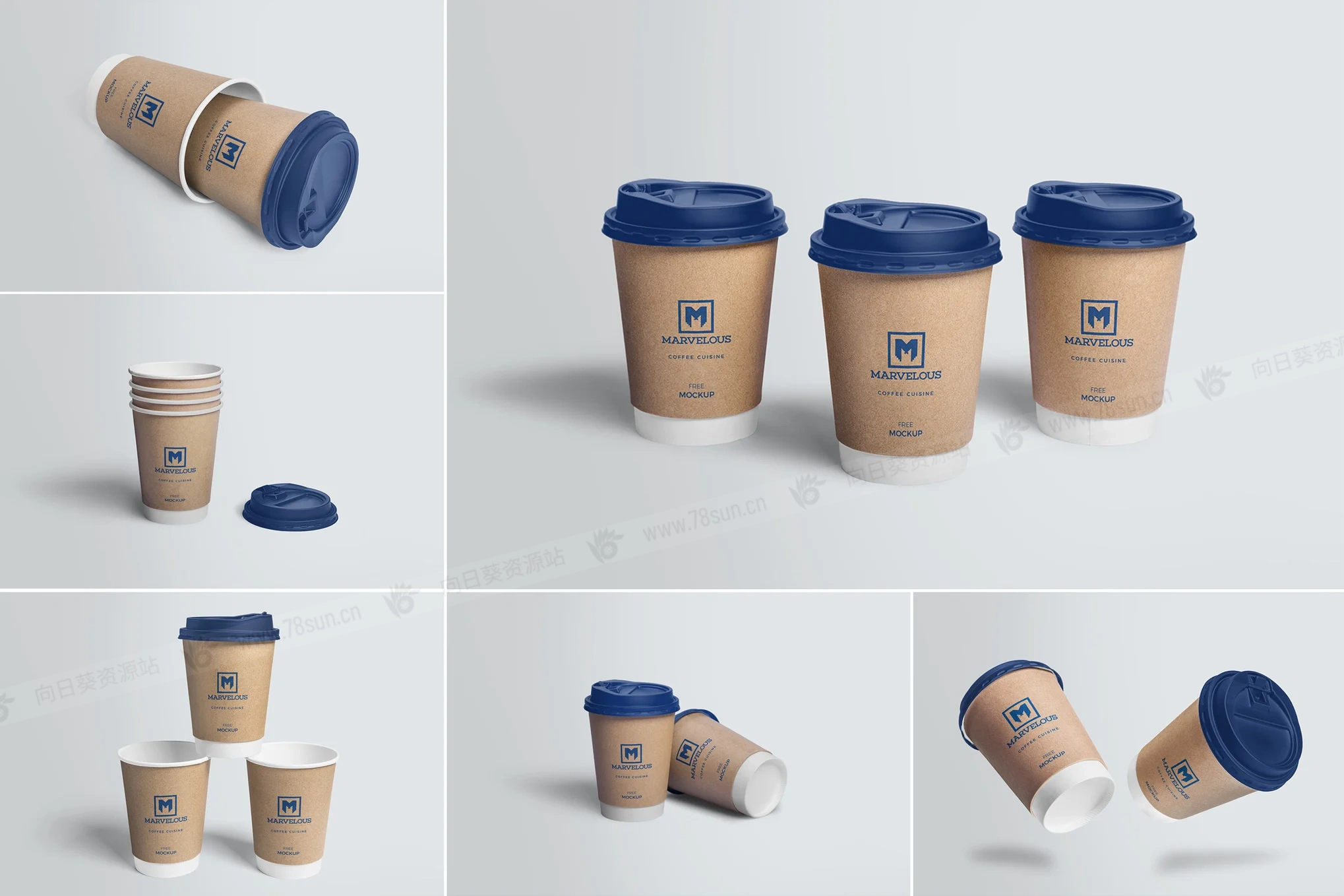 纸杯咖啡杯品牌VI效果图展示智能贴图psd设计样机。提供 6 个不同排列的模型场景。您可以更改杯子及其盖子的颜色。您还可以调整阴影、效果和背景。