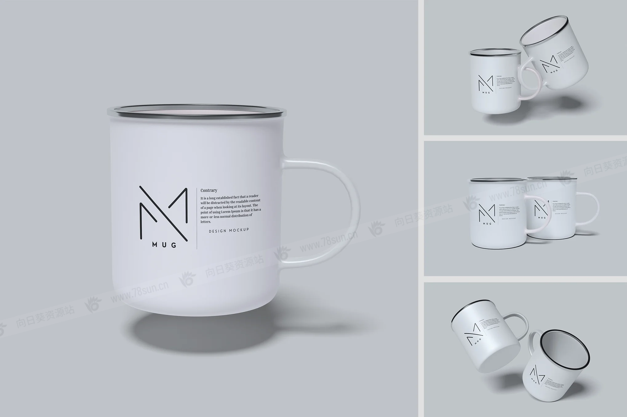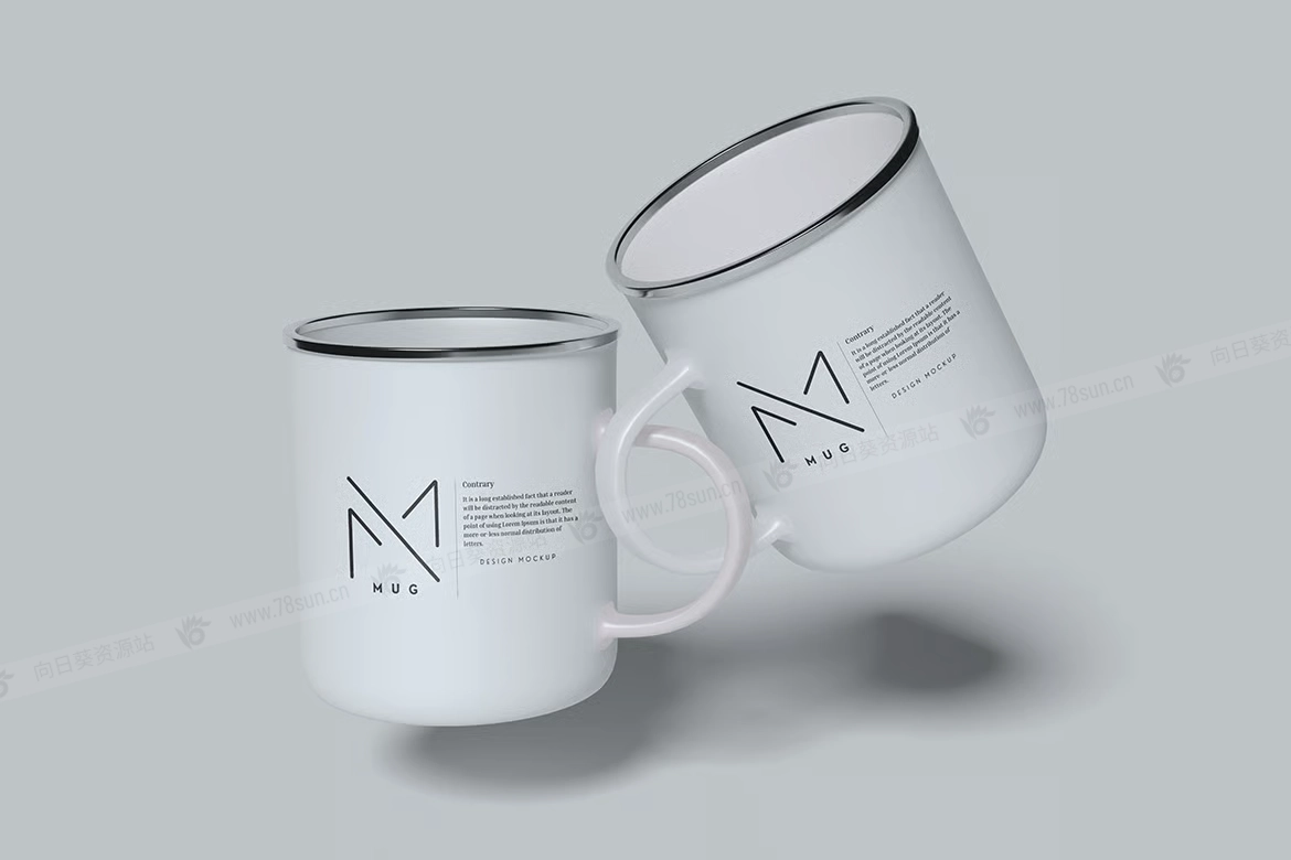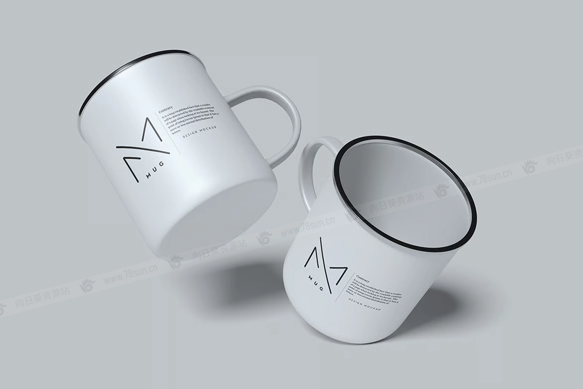 陶瓷马克杯品牌VI效果图展示智能贴图psd设计样机。该模型可通过智能对象进行完全定制,确保无缝的编辑体验。