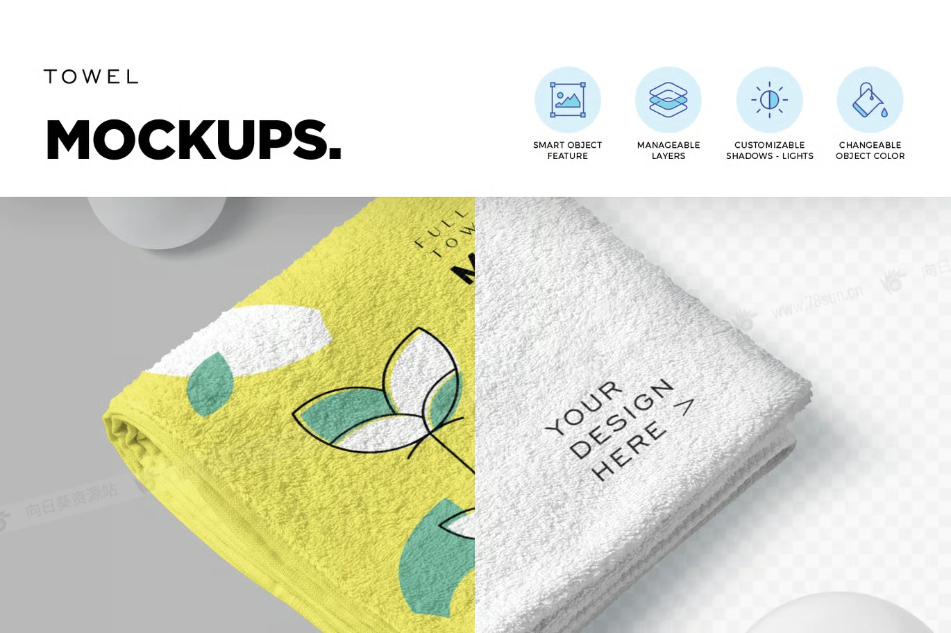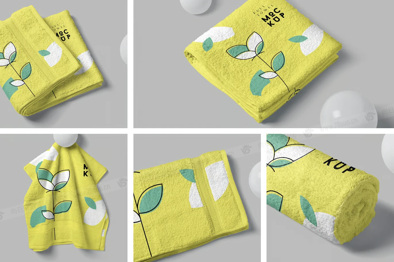 毛巾品牌VI效果图展示智能贴图psd设计样机。这些模型为所有自定义提供智能对象和命名良好的图层。