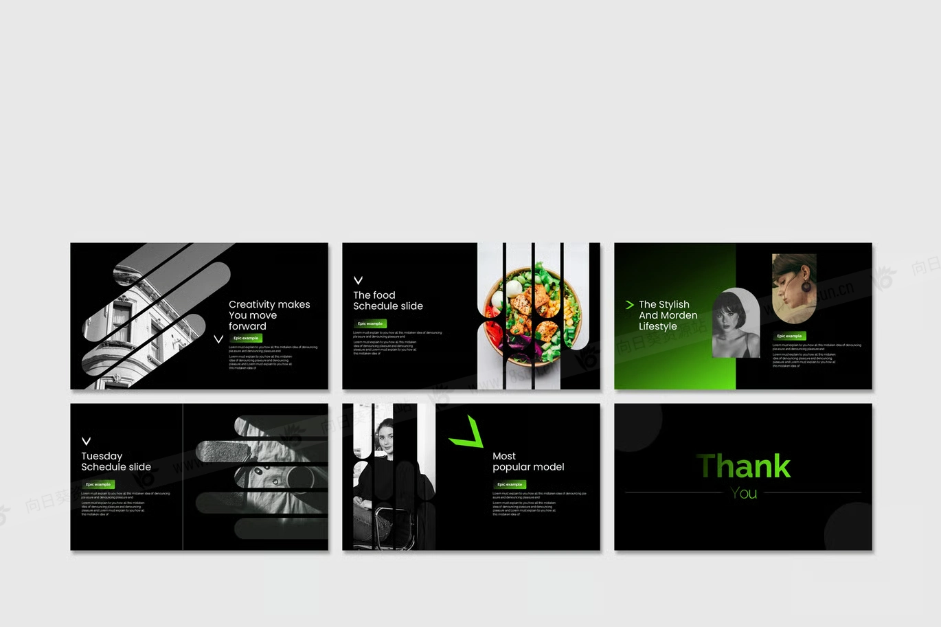 时尚创意演示PowerPoint幻灯片模板。所有幻灯片均采用出色的风格设计。所有元素都易于编辑,您可以轻松更改颜色以使其与您的个人或公司品牌相匹配。