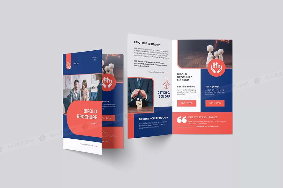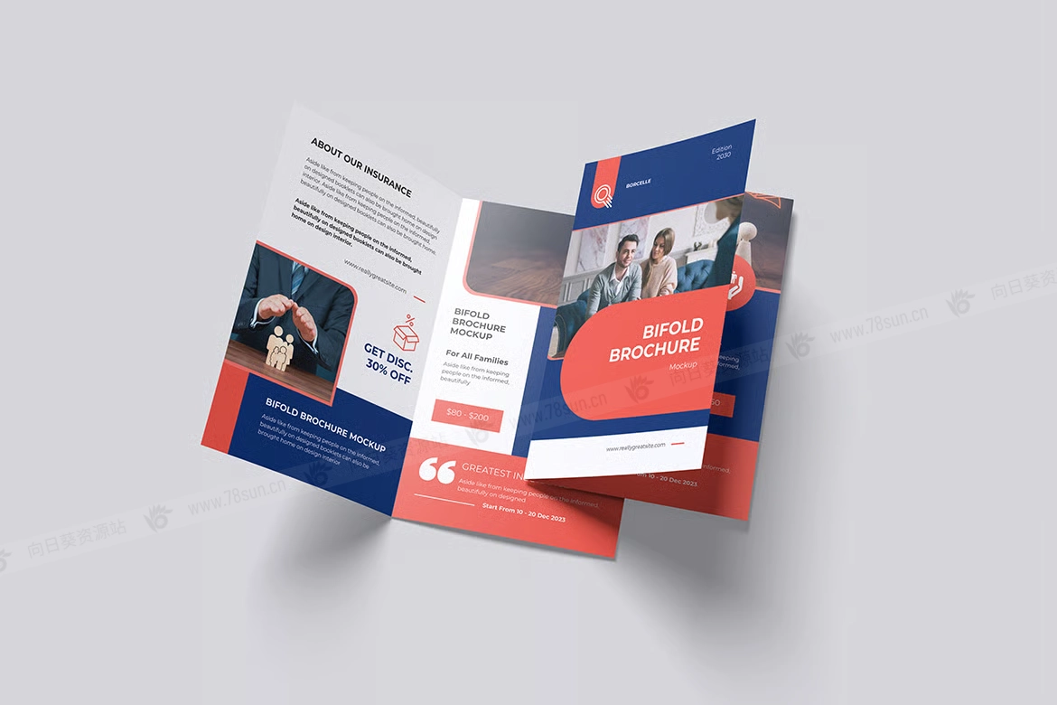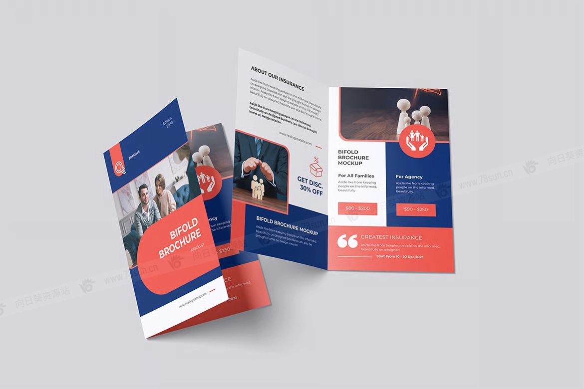 双折页宣传册小册子VI效果图展示智能贴图psd设计样机。该模型包括 3 个带有分层良好 PSD 文件,并且该模型还使用智能对象功能,这意味着您可以在几秒钟内轻松快速地使用自己的设计更改当前设计。