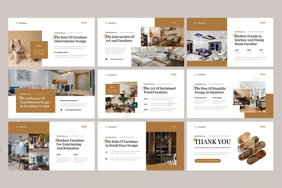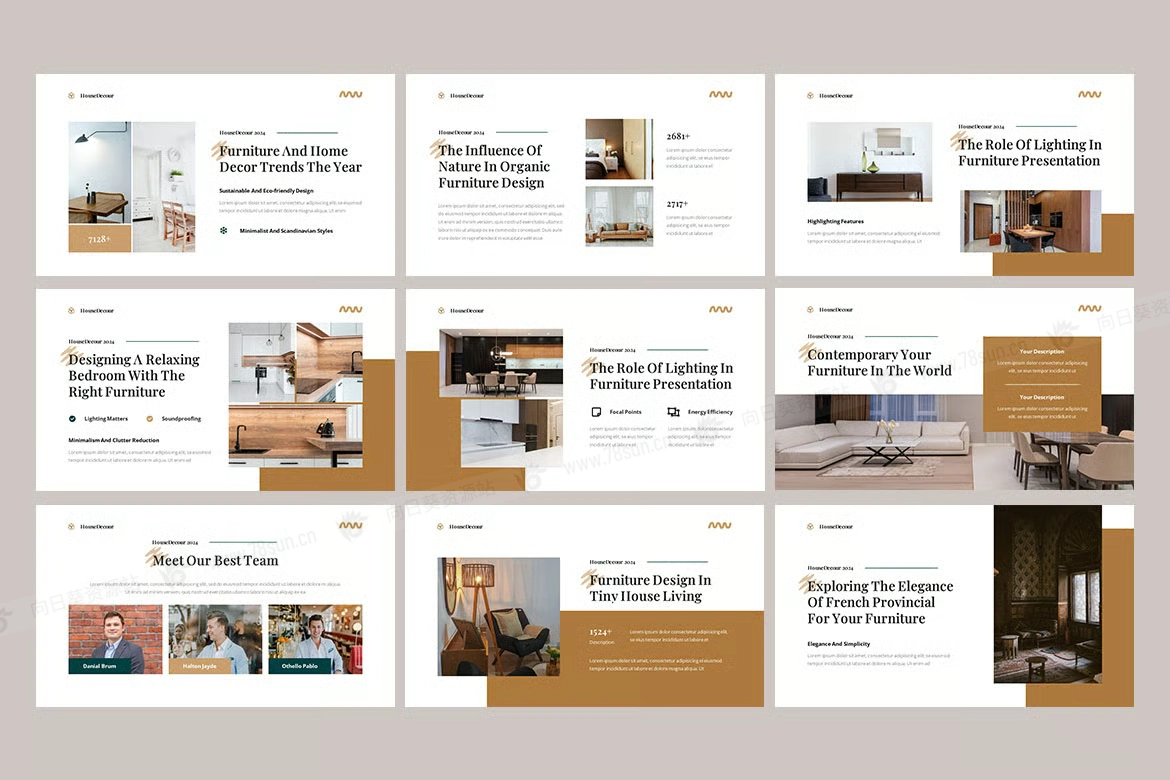 家居室内设计演示PowerPoint幻灯片模板,这个模板非常易于使用,优雅,使用纯色,还有条形图、圆形、折线等信息图表。用户可以根据品味定制设计,因为此模板可用于从事任何领域的公司,也可以称为多用途幻灯片