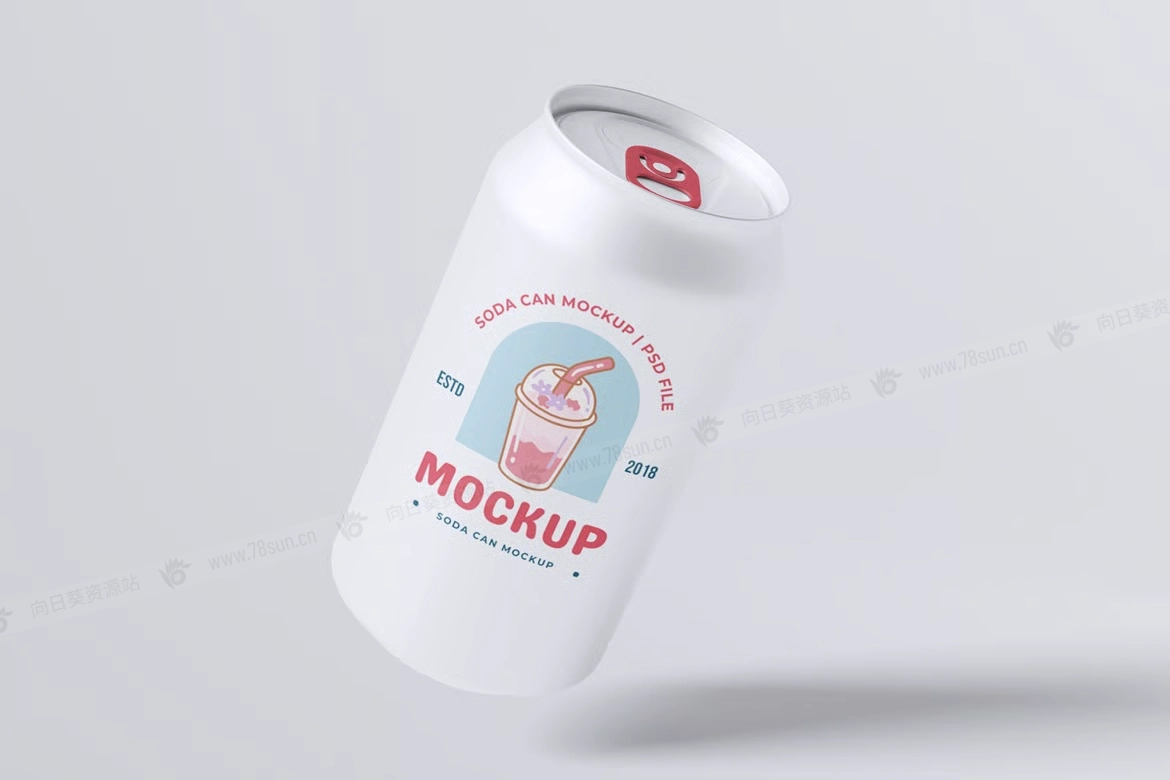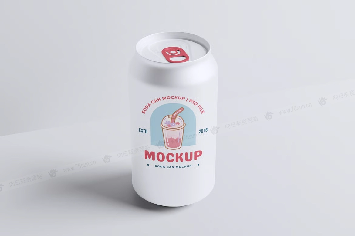 汽水饮料易拉罐头品牌VI效果图展示智能贴图psd设计样机。该模型包括 4 个带有分层良好 PSD 文件的项目,并且该模型还使用智能对象功能,这意味着您可以在几秒钟内轻松快速地使用自己的设计更改当前设计。