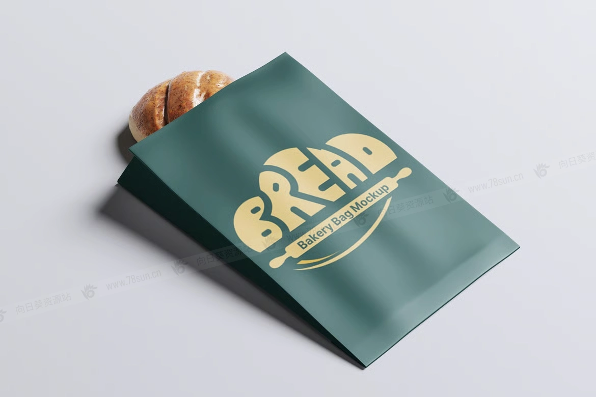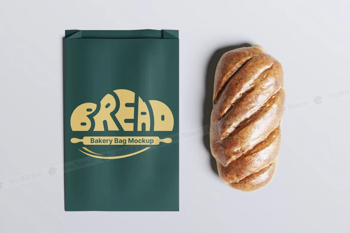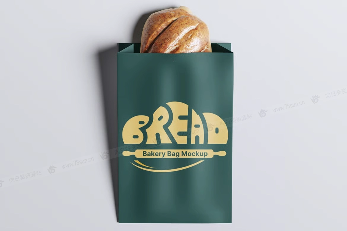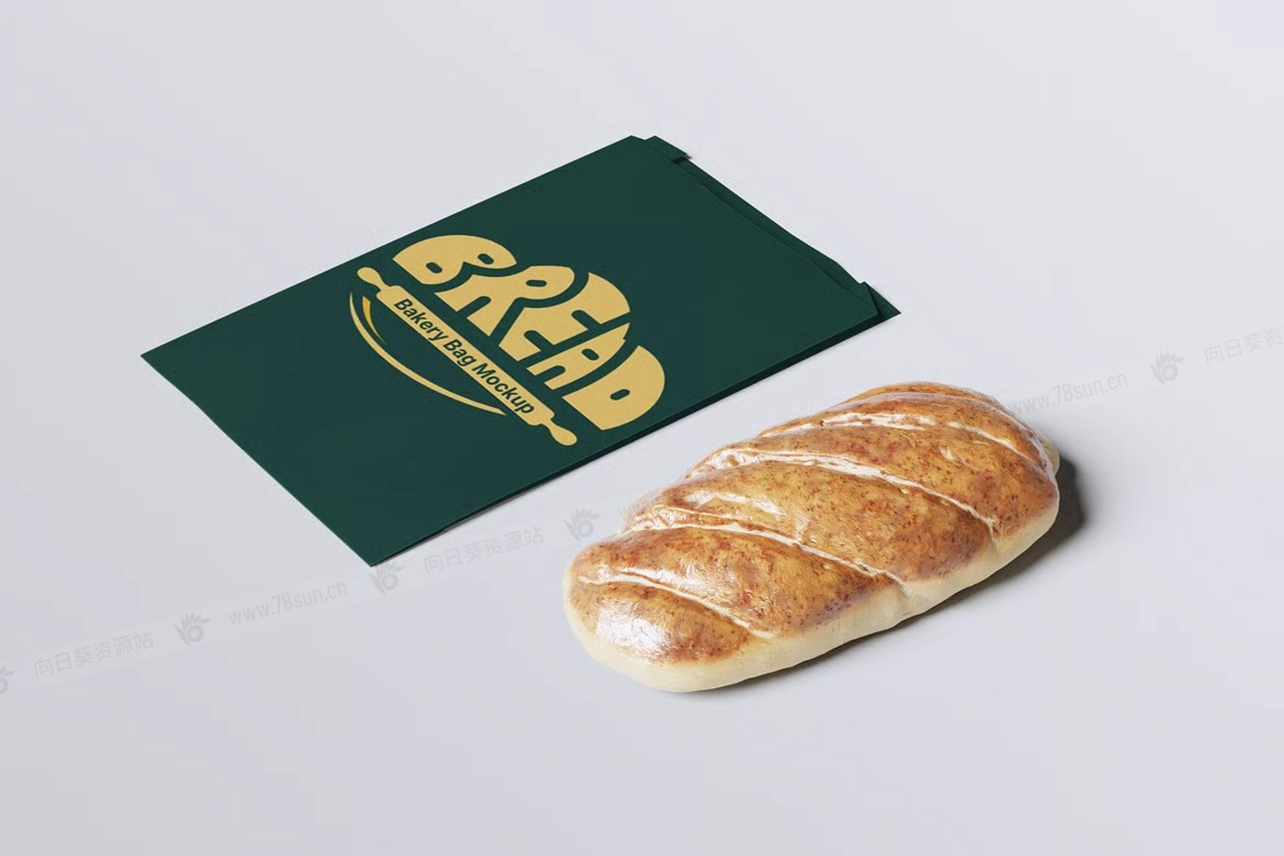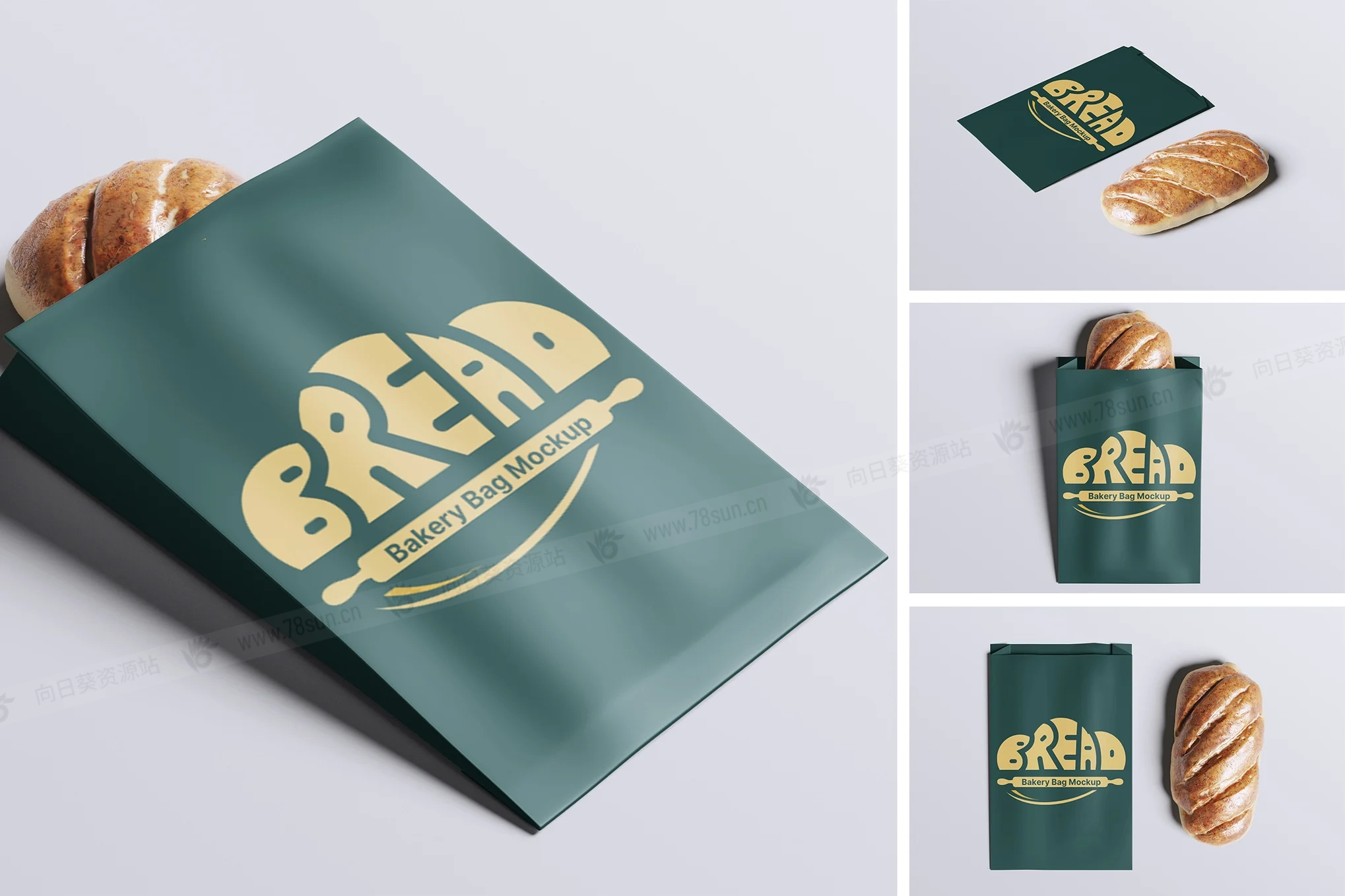 食品面包纸袋品牌VI效果图展示智能贴图psd设计样机。该模型包括 4 个带有分层良好 PSD 文件,并且该模型还使用智能对象功能,这意味着您可以在几秒钟内轻松快速地使用自己的设计更改当前设计。