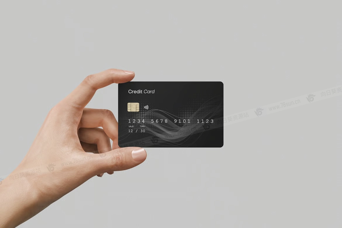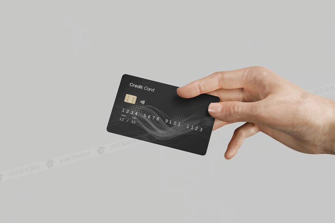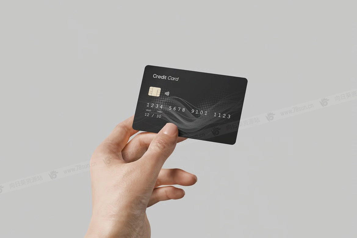 手持信用卡银行卡品牌VI效果图展示智能贴图psd设计样机,该模型包括 04 个带有分层良好 PSD 文件,并且该模型还使用智能对象功能,这意味着您可以在几秒钟内轻松快速地使用自己的设计更改当前设计。