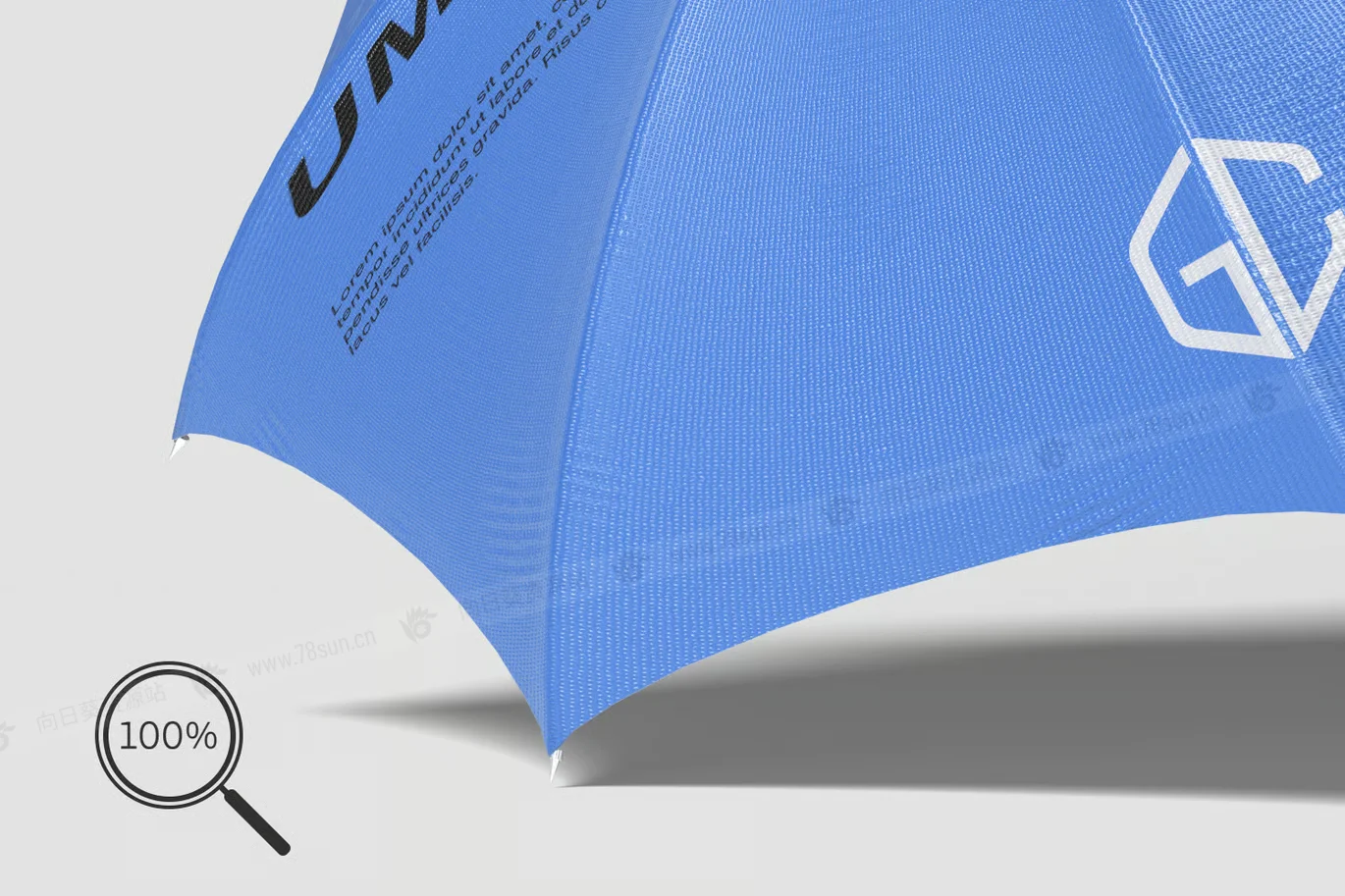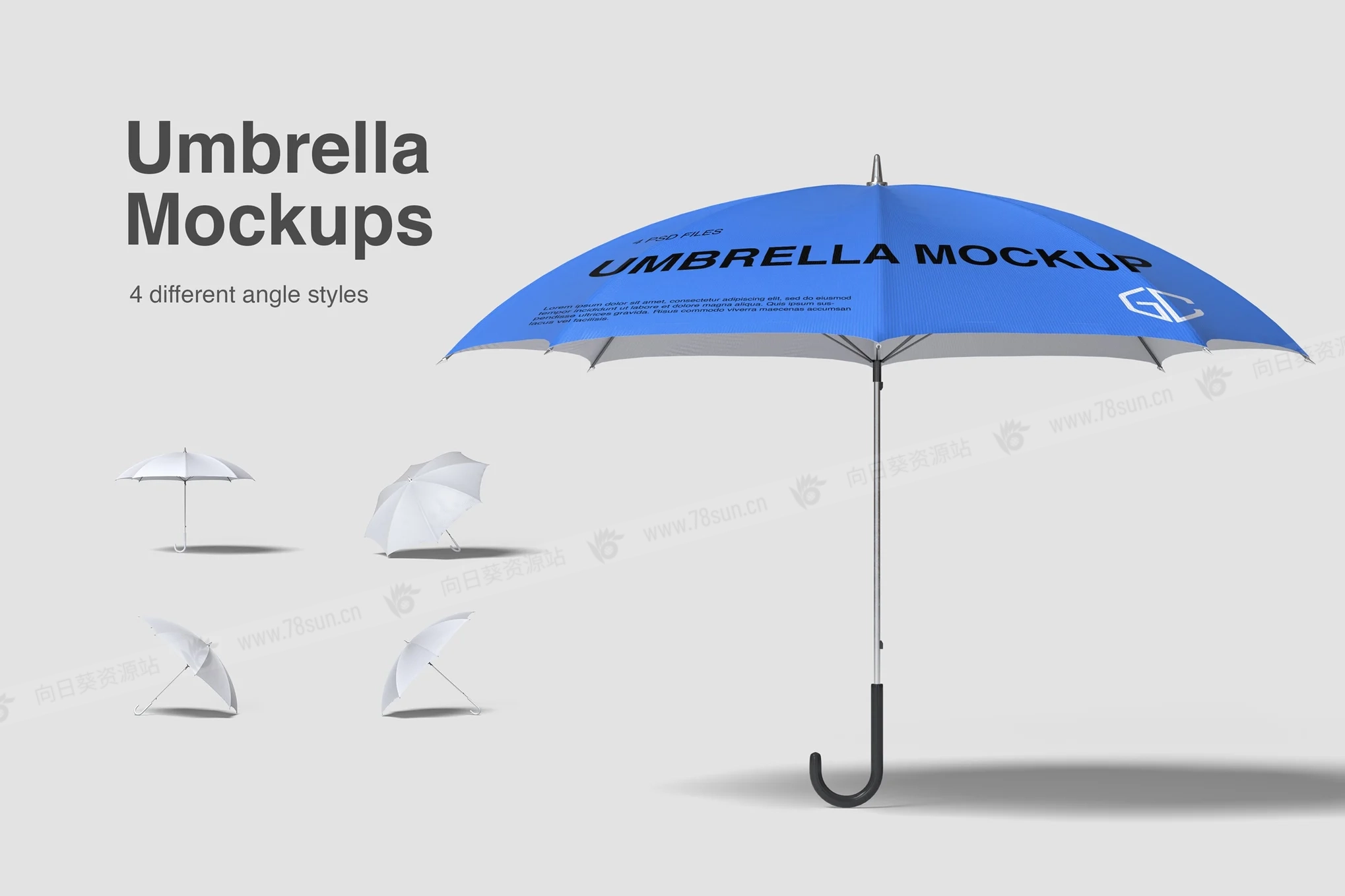 长柄打开的雨伞品牌VI效果图展示智能贴图psd设计样机。这是 Photoshop 文件、分层和智能对象功能,可帮助您轻松编辑设计。