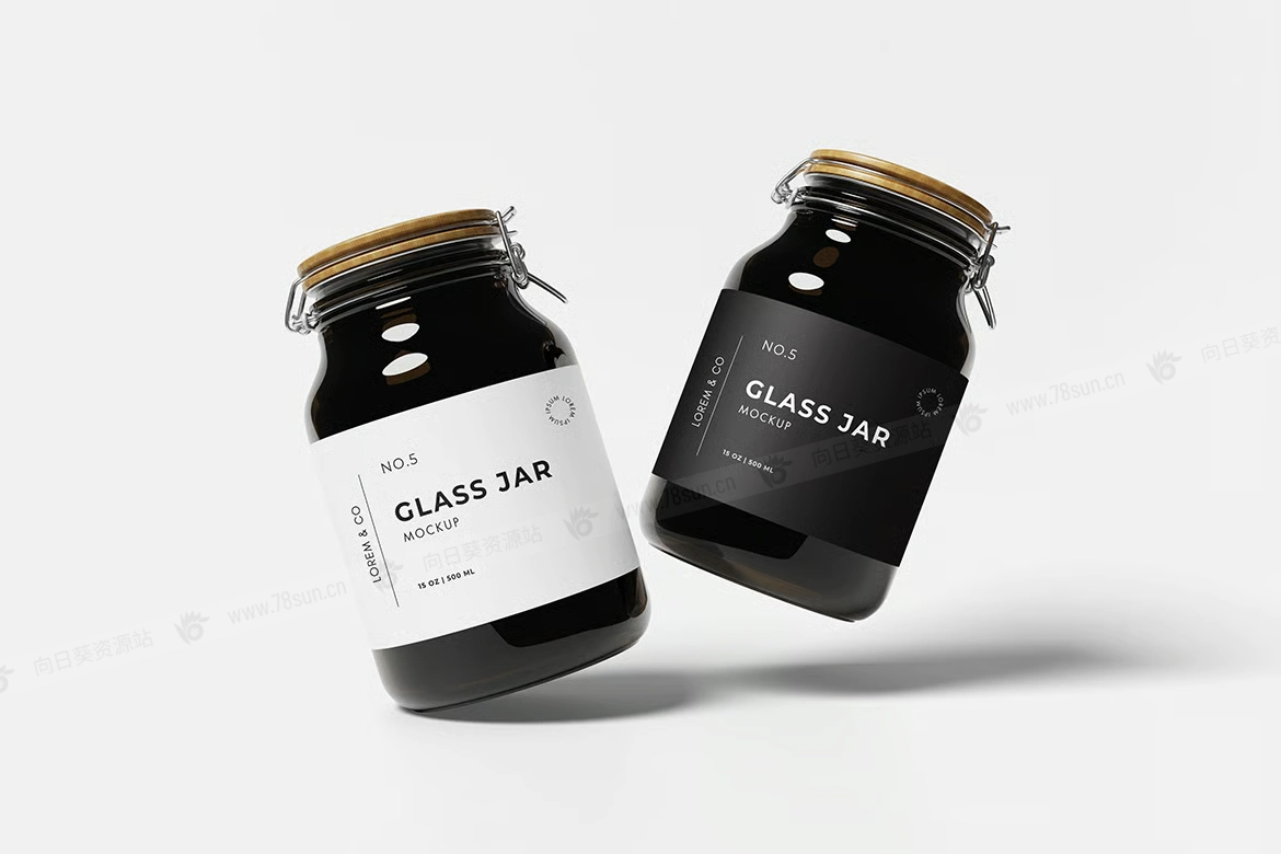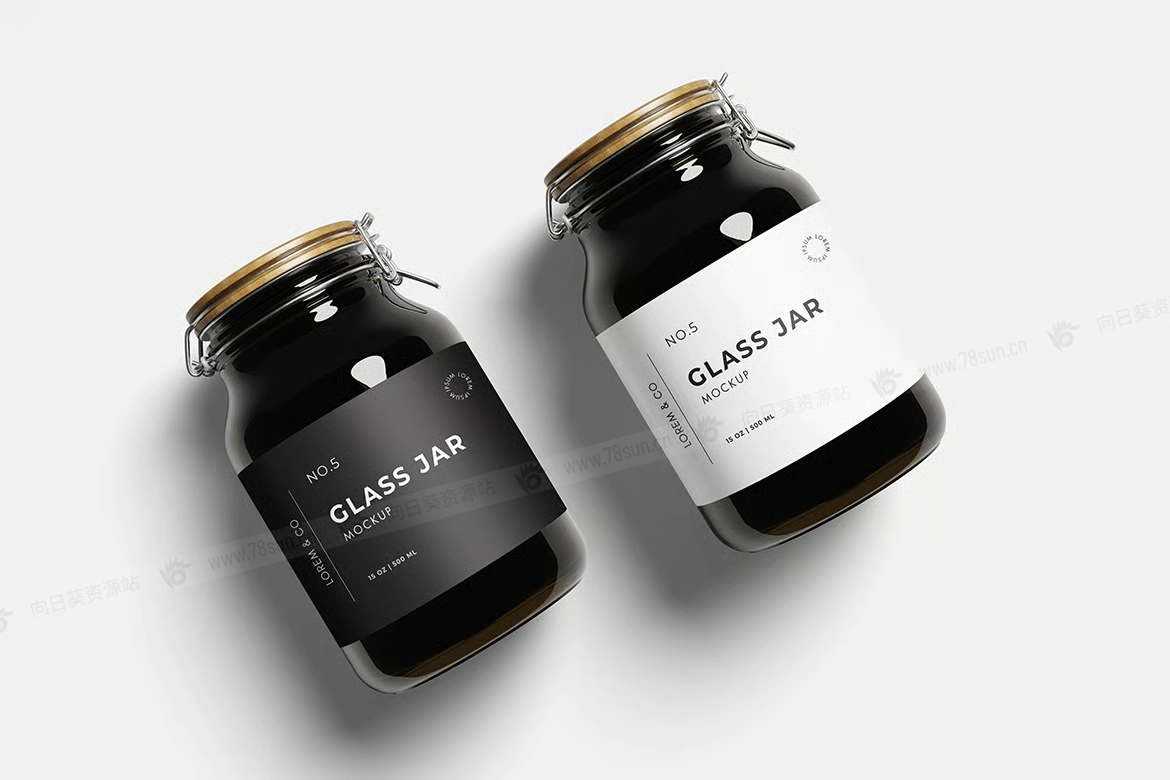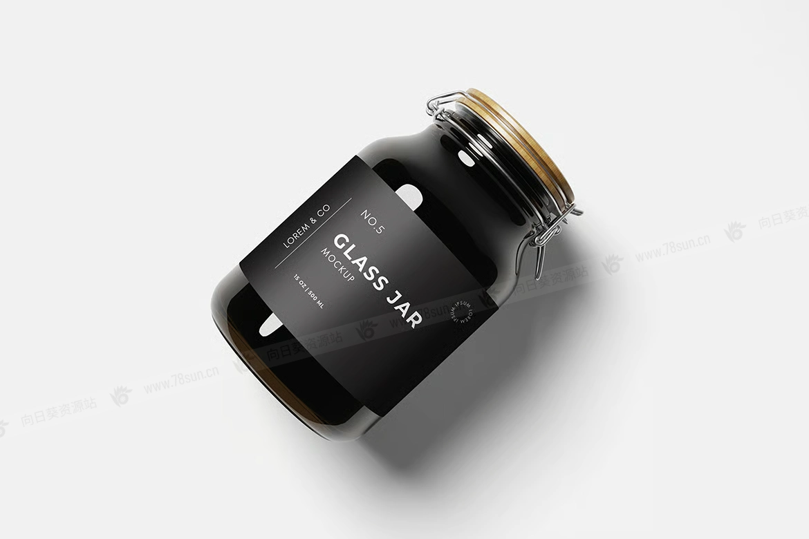夹盖玻璃罐玻璃瓶品牌VI效果图展示智能贴图psd设计样机。您可以使用智能对象功能轻松快速地替换设计。以 PSD Photoshop 格式提供,具有智能对象功能,可帮助您在几秒钟内将当前设计替换为您自己的设计。