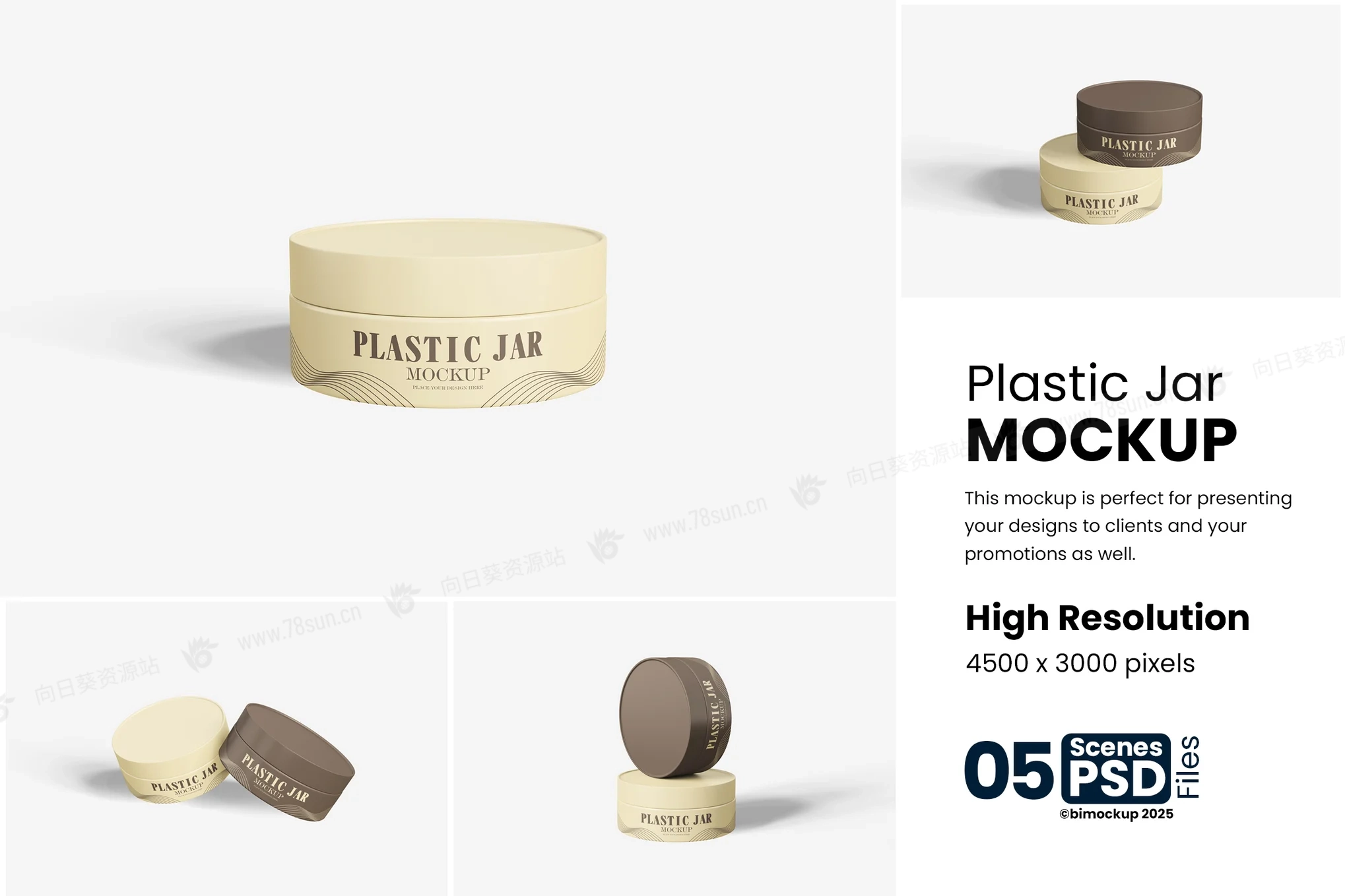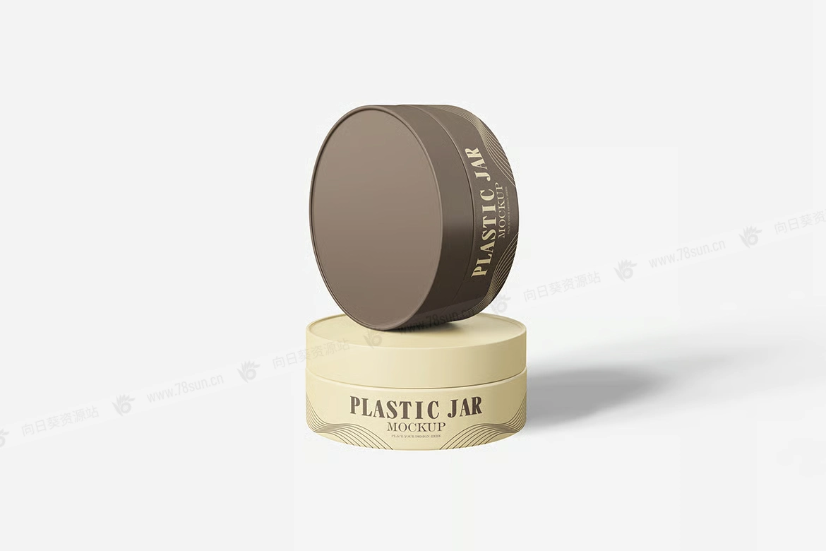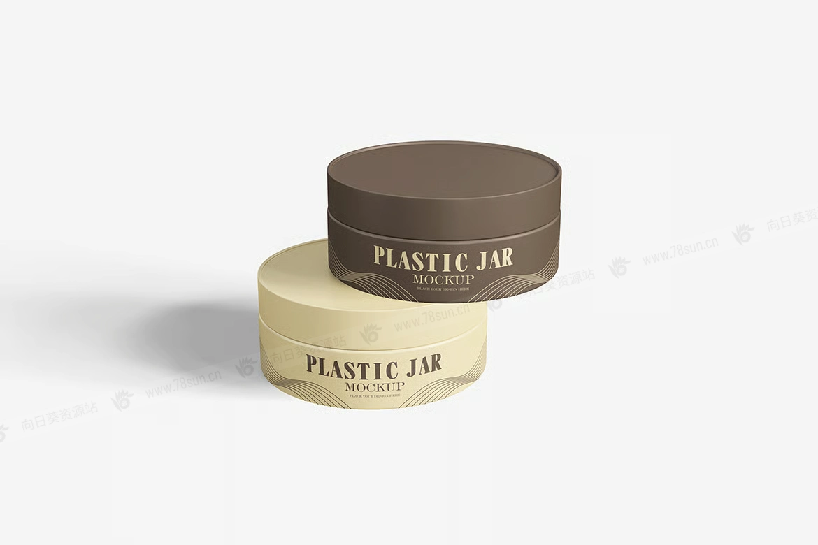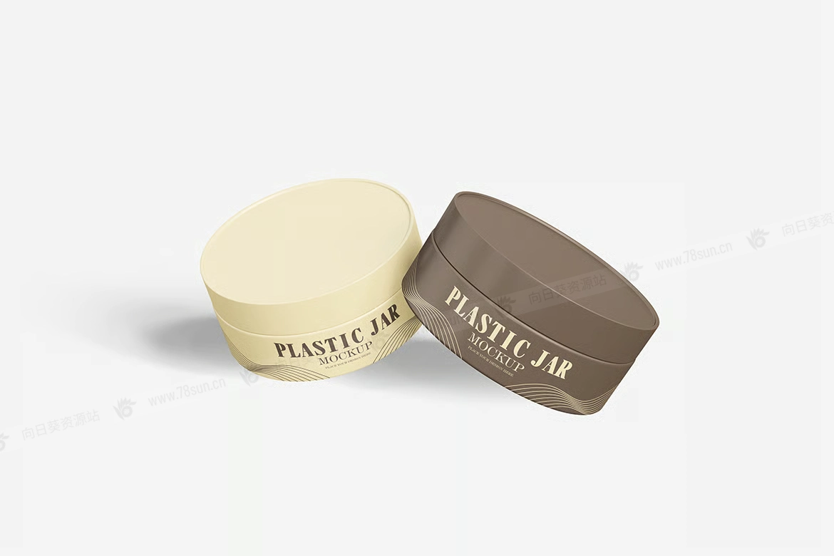 化妆品面霜罐塑料罐品牌VI效果图展示智能贴图psd设计样机。您可以使用智能对象功能轻松快速地替换设计。以 PSD Photoshop 格式提供,具有智能对象功能,可帮助您在几秒钟内将当前设计替换为您自己的设计。