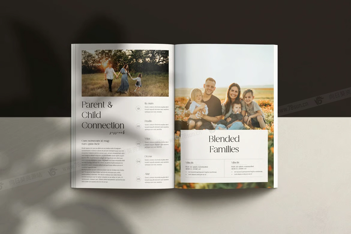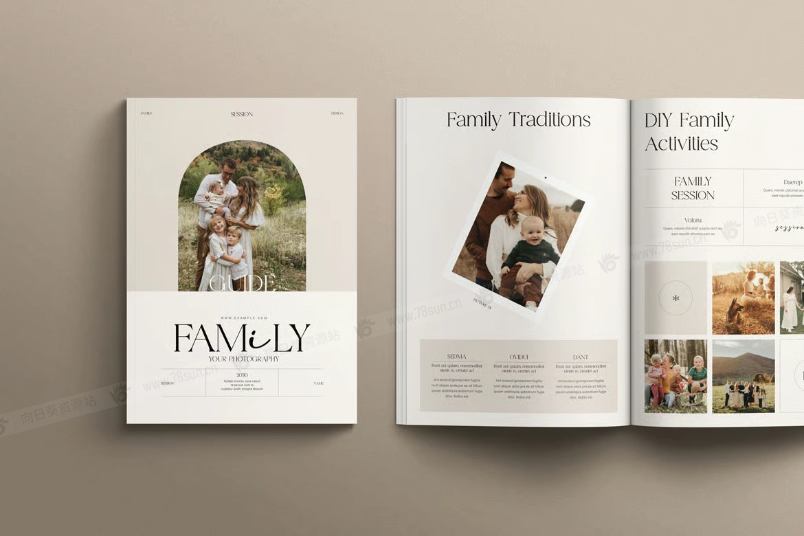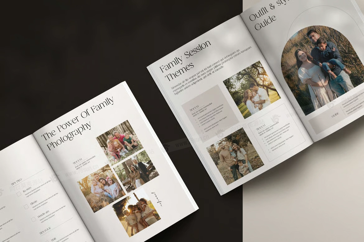 时尚生活摄影作品集小册子杂志宣传册画册indd设计模板,添加徽标、图像并编辑您的品牌颜色和排版,
