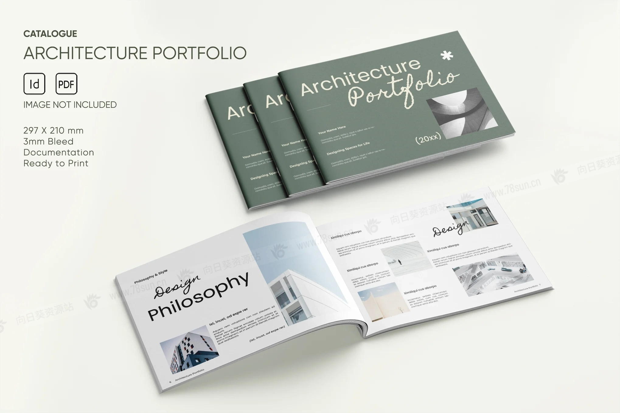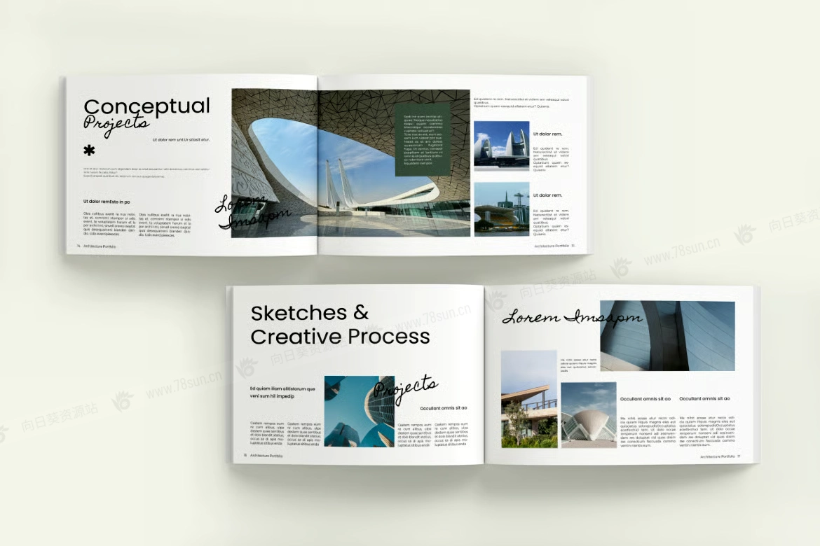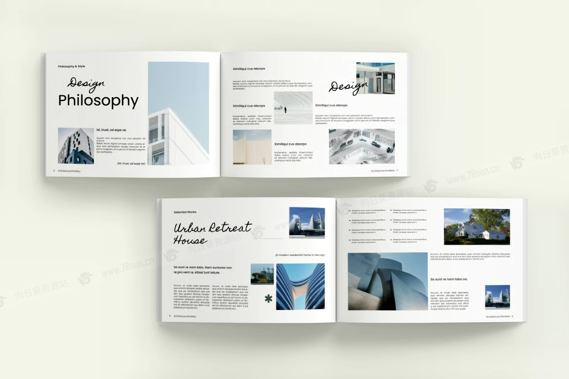 横版建筑房地产摄影作品集小册子杂志宣传册画册indd pdf设计模板,