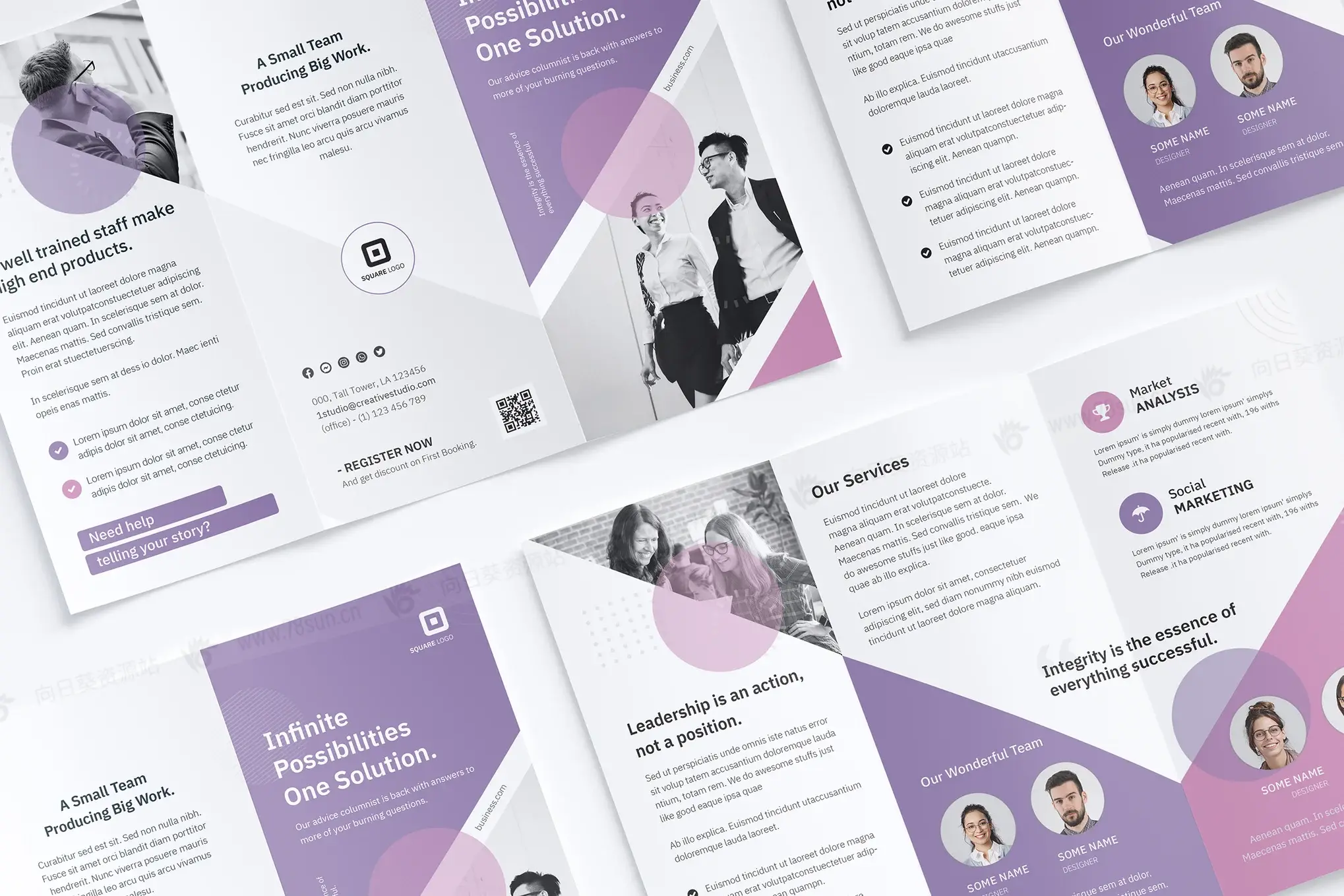 商务公司简介三折页宣传单小册子psd设计模板,可用于任何个人或公司,非常容易编辑,非常容易调整和定制,包括帮助文件。
