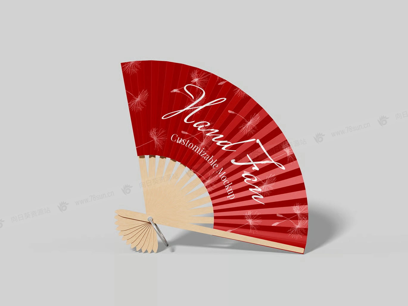 扇子折扇品牌VI效果图展示智能贴图psd设计样机,使用智能对象图层轻松应用您的设计并自定义背景