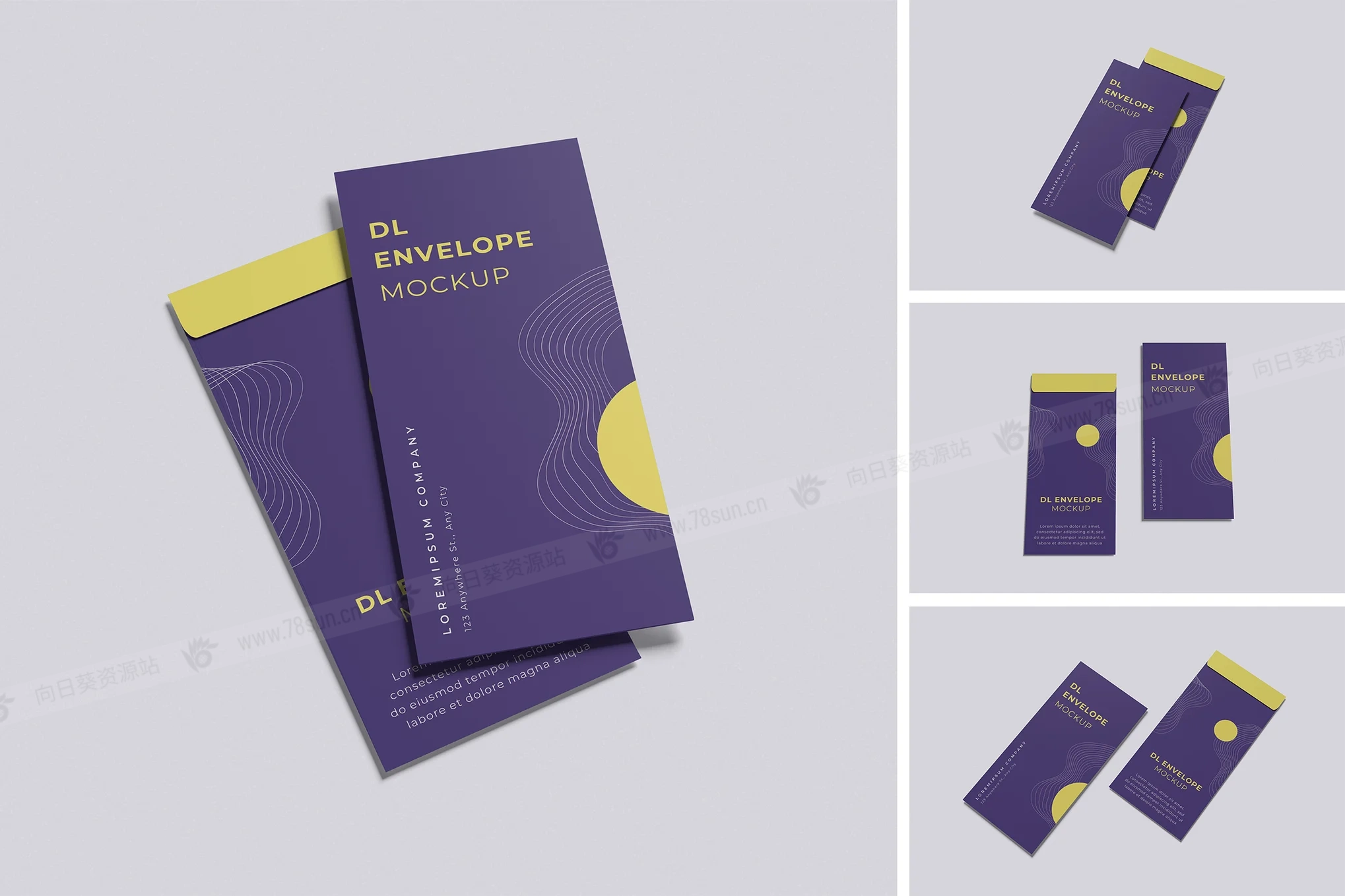 信封品牌VI效果图展示智能贴图psd设计样机。该模型包括 4 个带有分层良好 PSD 文件,并且该模型还使用智能对象功能,这意味着您可以在几秒钟内轻松快速地使用自己的设计更改当前设计。
