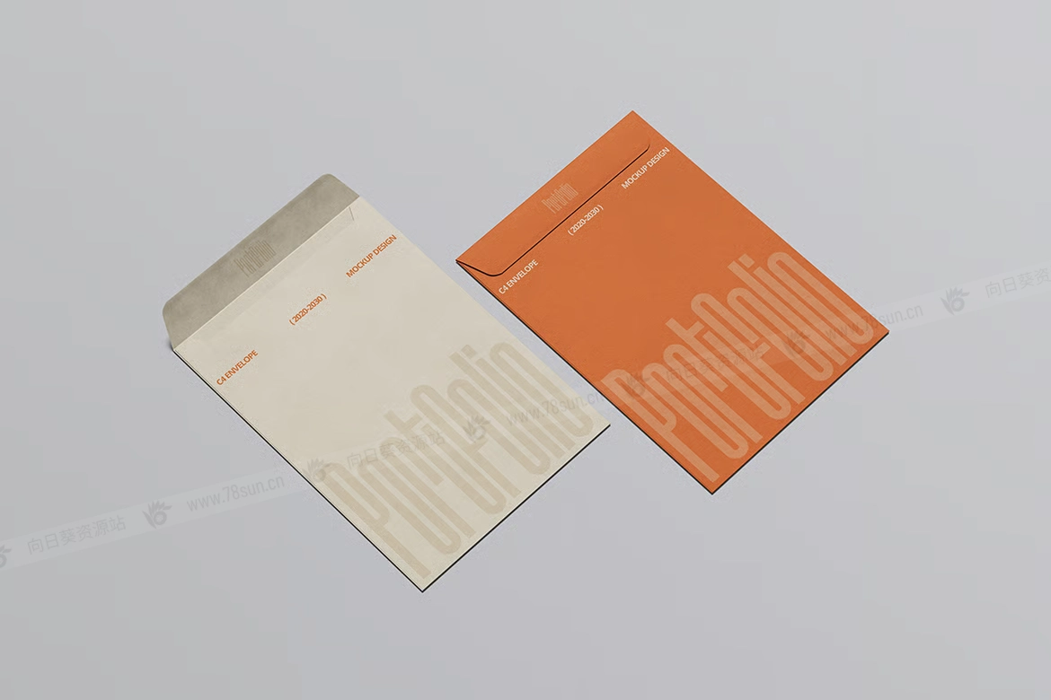 信封品牌VI效果图展示智能贴图psd设计样机,该模型包括 4 个带有分层良好 PSD 文件,并且该模型还使用智能对象功能,这意味着您可以在几秒钟内轻松快速地使用自己的设计更改当前设计。