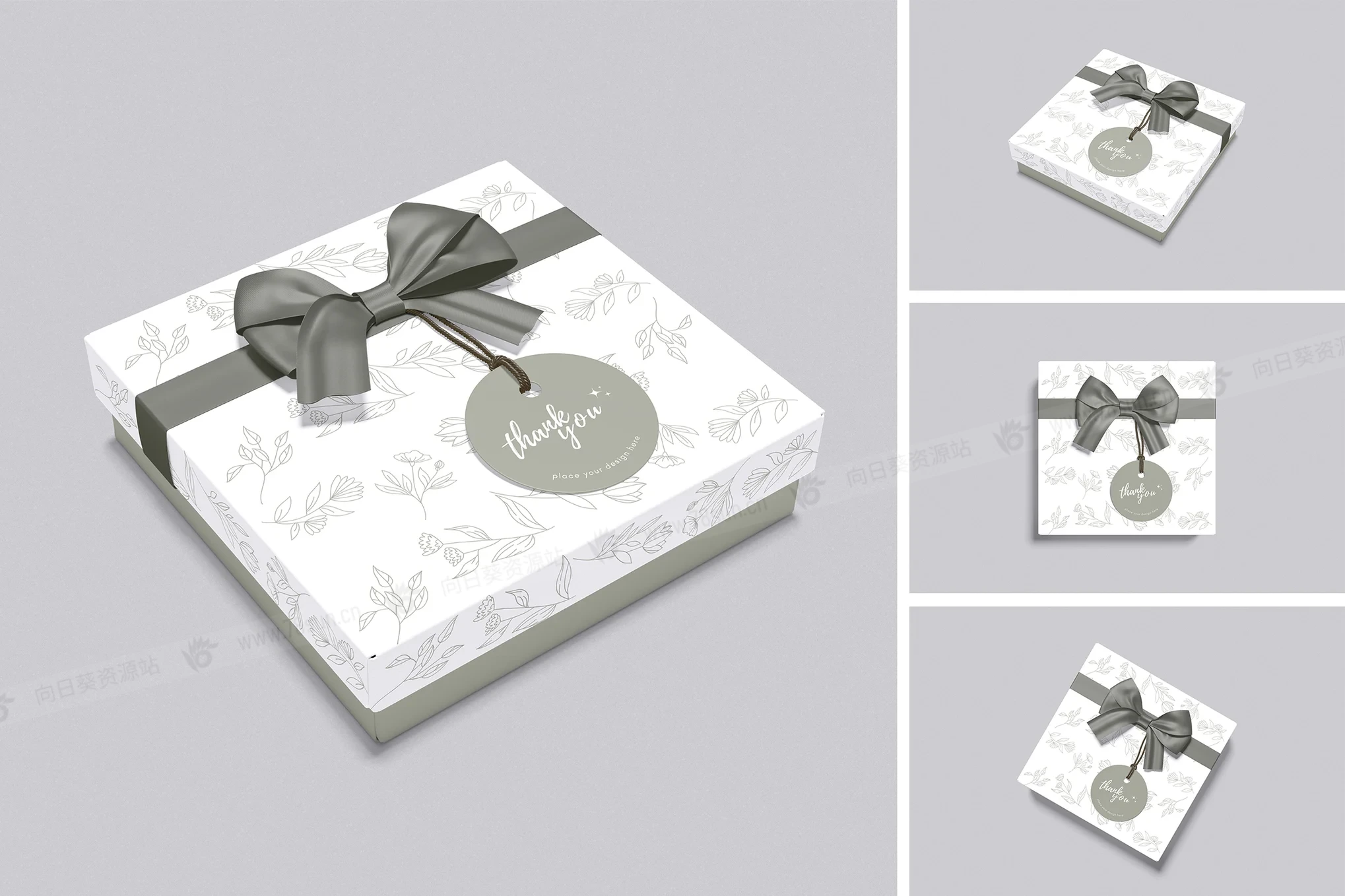 带标签礼品包装盒品牌VI效果图展示智能贴图psd设计样机,该模型包括 04 个带有分层良好 PSD 文件,并且该模型还使用智能对象功能,这意味着您可以在几秒钟内轻松快速地使用自己的设计更改当前设计。