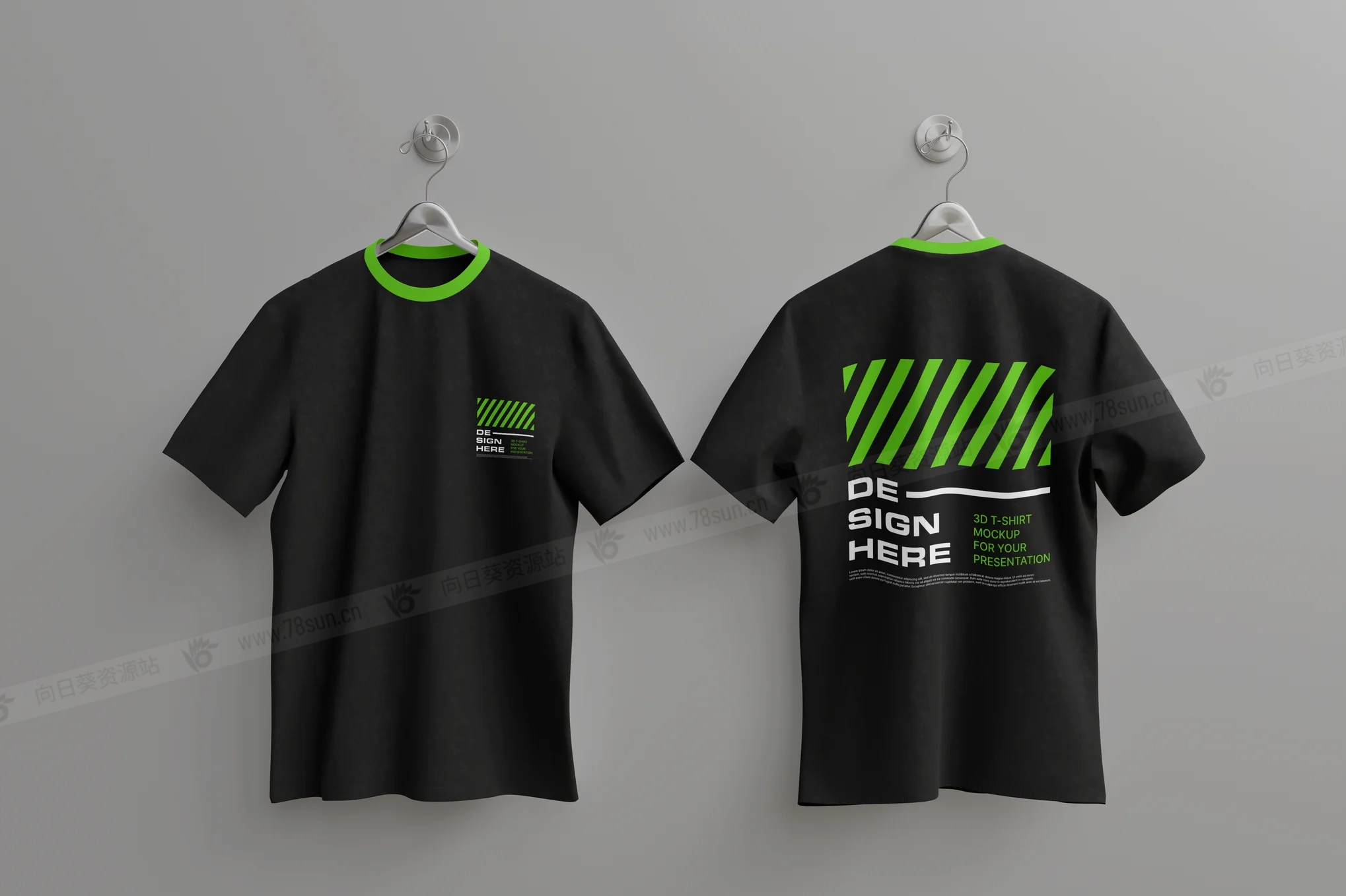 圆领短袖T恤服装品牌VI效果图展示智能贴图psd设计样机。您可以使用智能对象功能轻松快速地替换设计。以 PSD Photoshop 格式提供,具有智能对象功能,可帮助您在几秒钟内将当前设计替换为您自己的设计。