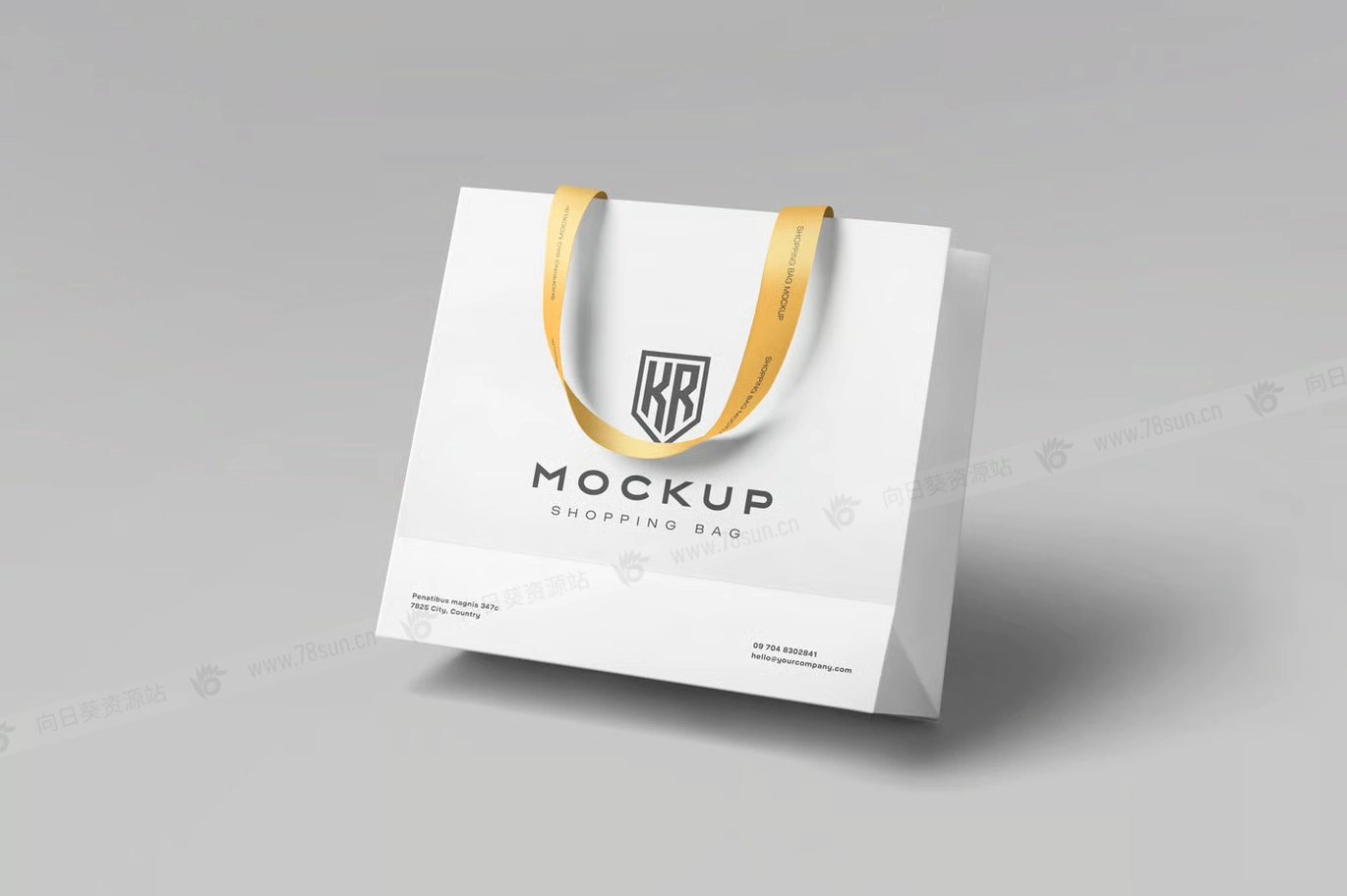 纸质购物袋手提袋品牌VI效果图展示智能贴图psd设计样机,得益于智能对象功能,定制变得毫不费力。轻松调整包的设计和表带颜色,以符合您的品牌形象或客户的愿景。只需点击几下,您就可以将您的概念转化为引人入胜的产品演示,给人留下持久的印象。