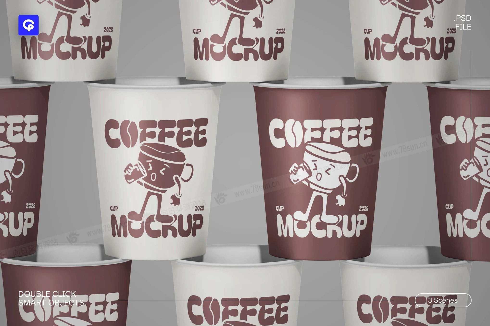 纸杯咖啡杯品牌VI效果图展示智能贴图psd设计样机,
