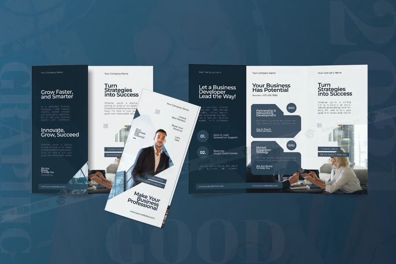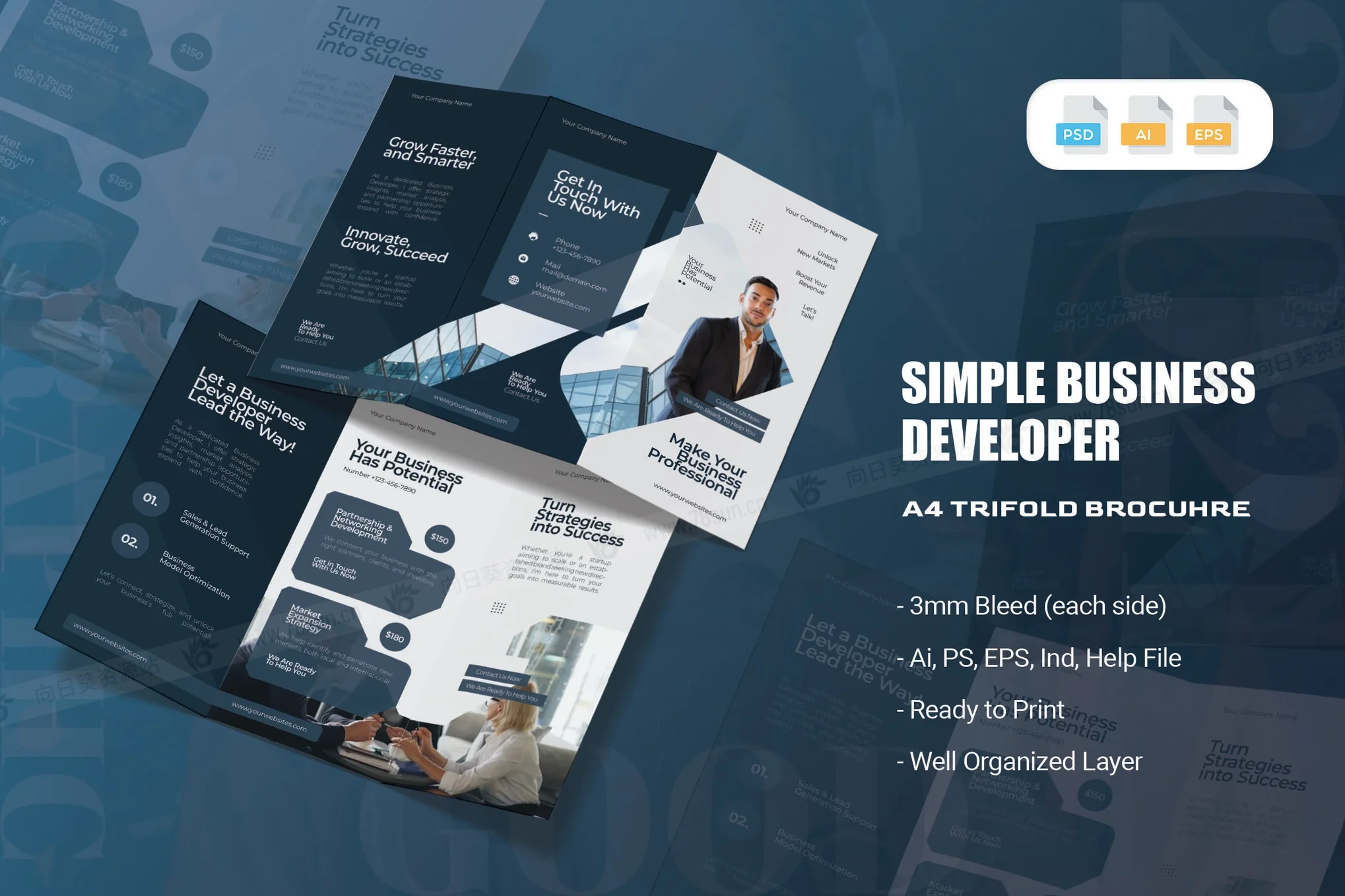 商业公司简介双折页宣传小册子psd ai设计模板,这种布局适用于任何项目目的。非常易于使用和定制。