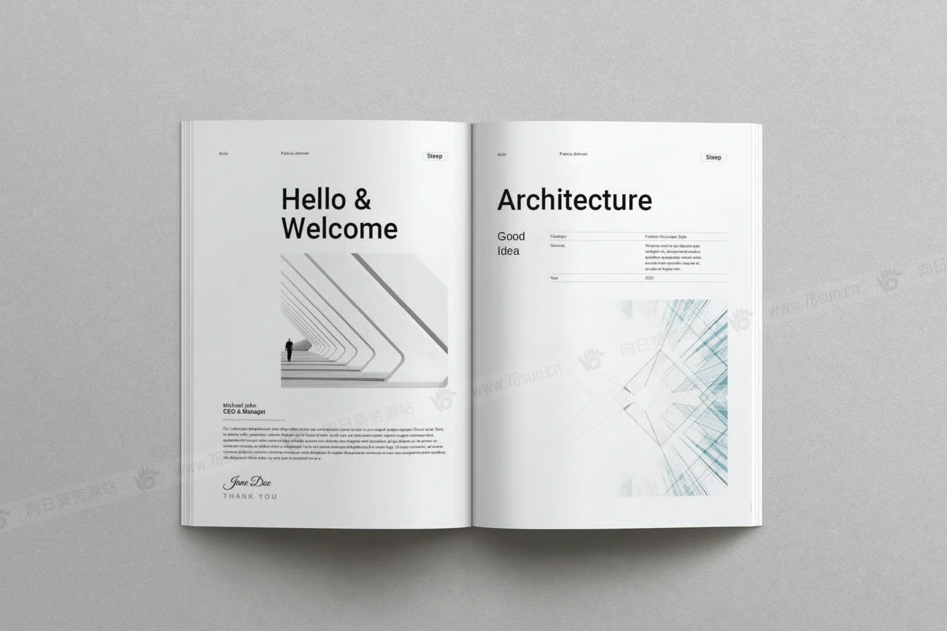 建筑房地产小册子杂志宣传册画册indd设计模板,添加徽标和图像,并编辑您的品牌颜色和排版,