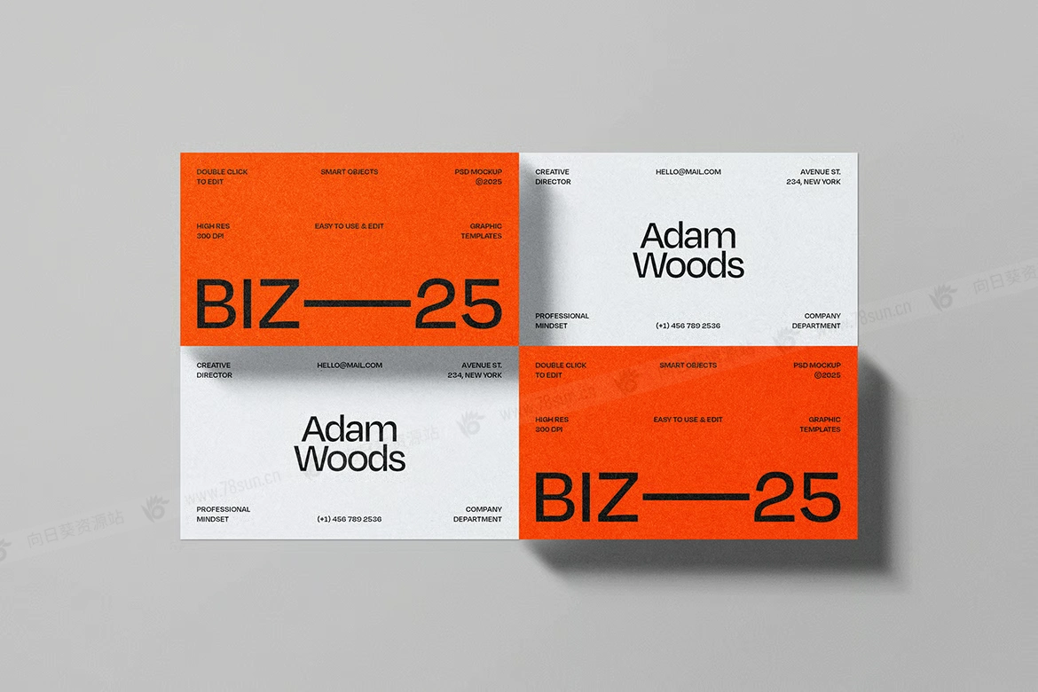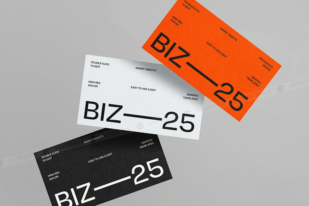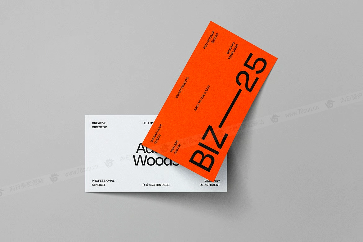 名片商业卡片品牌VI效果图展示智能贴图psd设计样机,具有可自定义的背景颜色和智能对象功能,便于编辑。