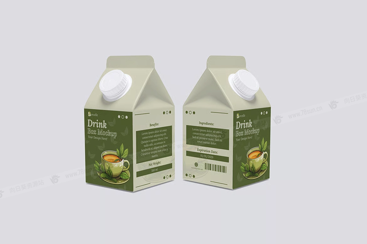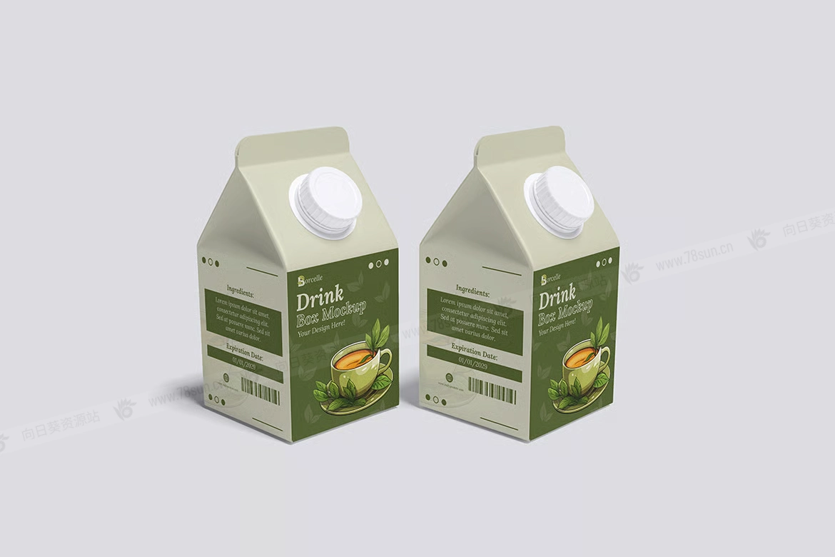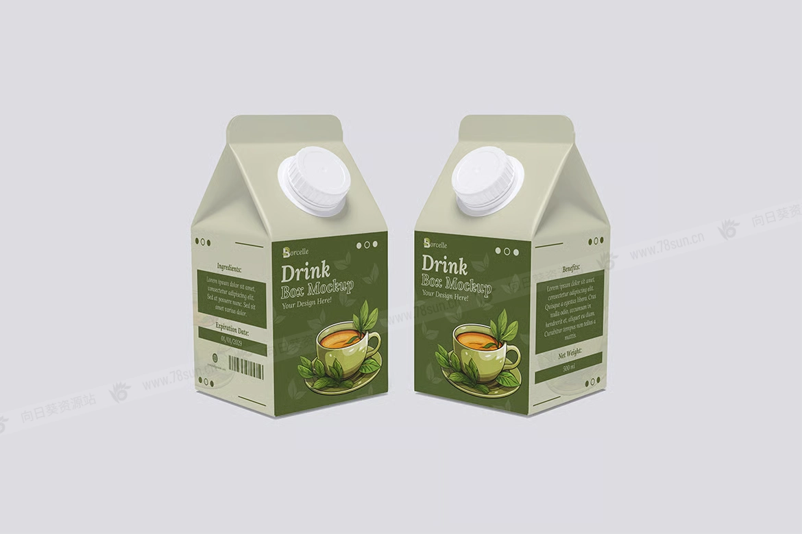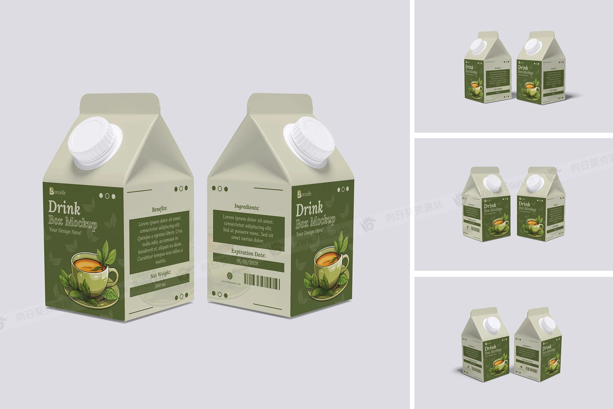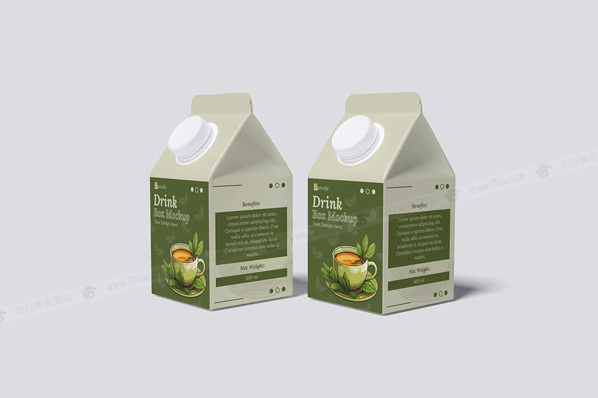 利乐牛奶饮料包装纸盒品牌VI效果图展示智能贴图psd设计样机,该模型包括 04 个带有分层良好 PSD 文件,并且该模型还使用智能对象功能,这意味着您可以在几秒钟内轻松快速地使用自己的设计更改当前设计。