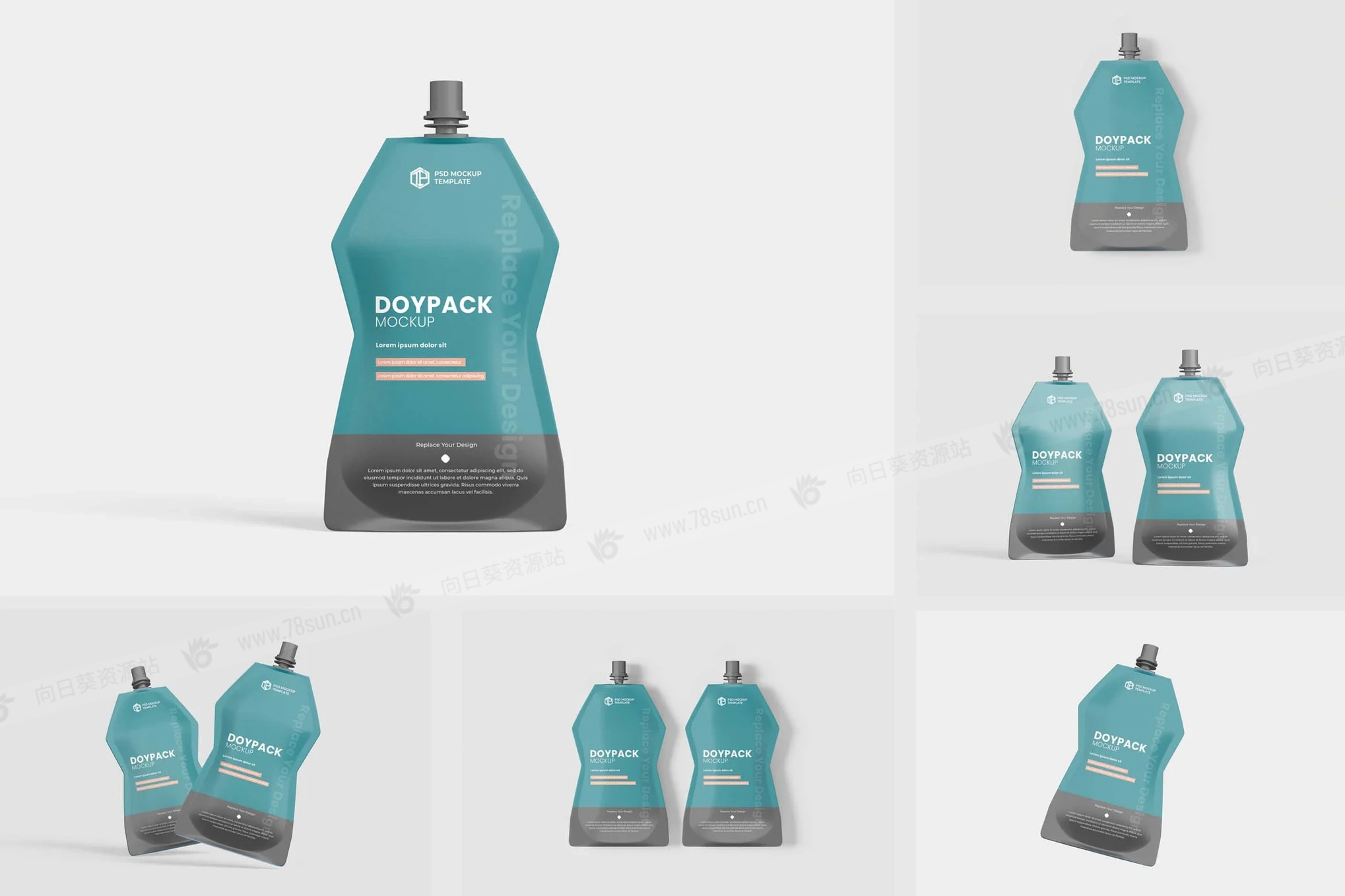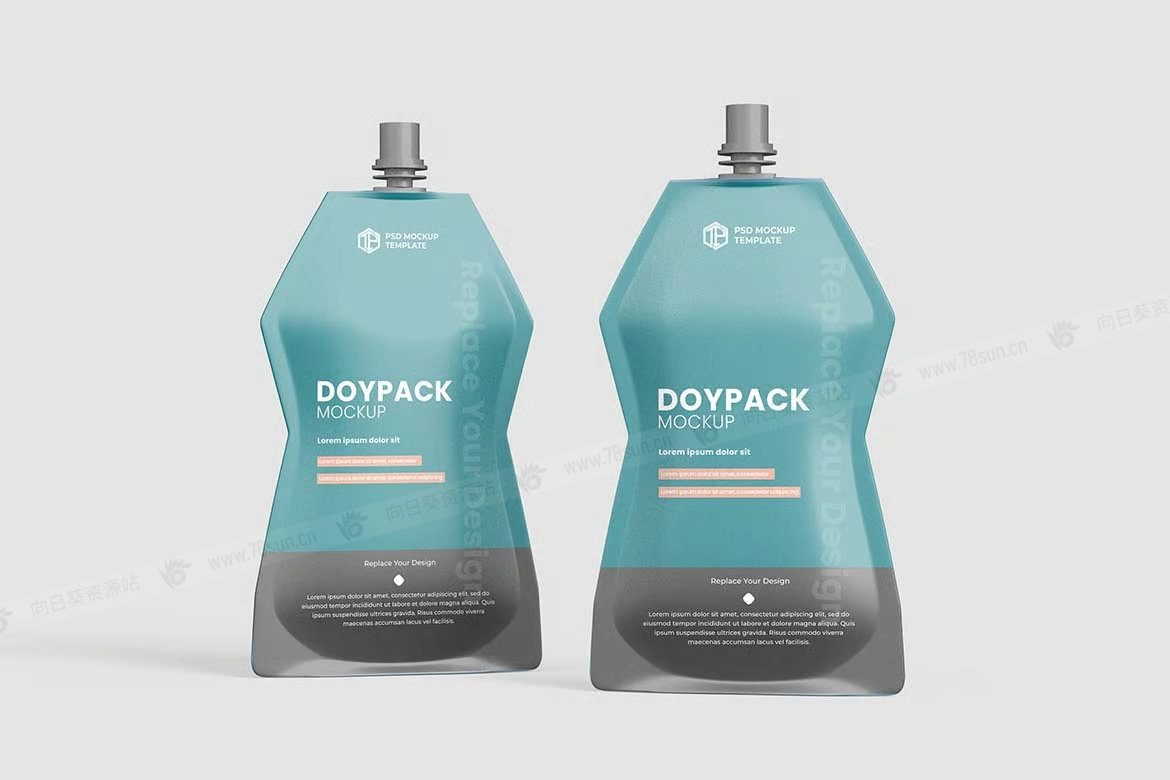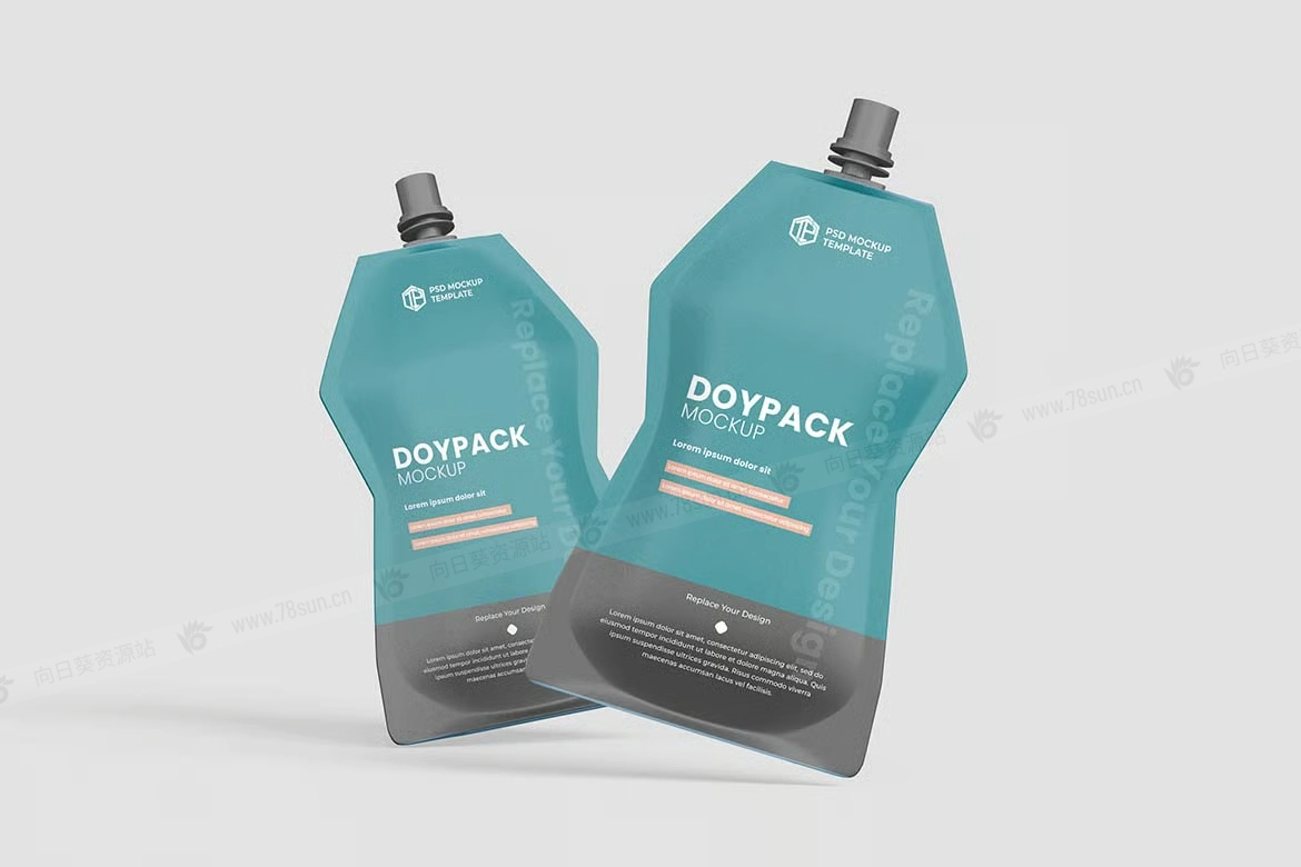 食品化妆品吸嘴液体袋品牌VI效果图展示智能贴图psd设计样机!只需使用 Photoshop 的智能对象一键放置您的设计。就这么简单!