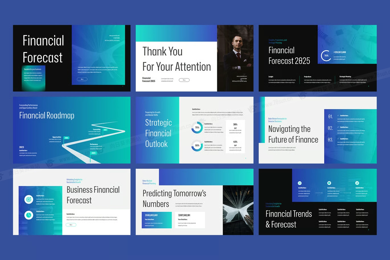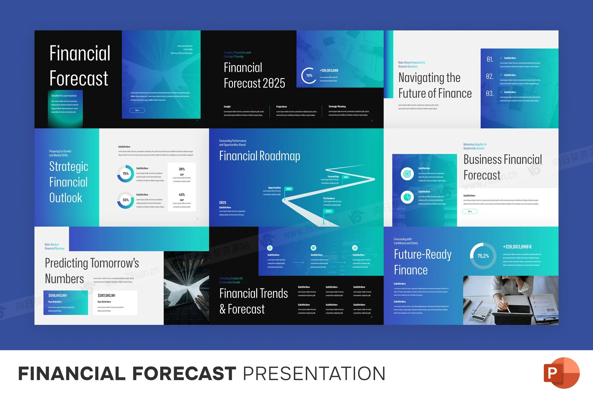 金融商务财务规划管理演示PowerPoint幻灯片模板。它包括收入预测、费用明细、损益表、现金流分析、资产负债表、市场趋势、投资机会和长期预测部分。该模板采用现代图表、数据表、信息图表和时间线视觉效果精心制作,使利益相关者、投资者、高管和业务团队易于理解复杂的财务信息。它非常适合企业规划、投资者会议、预算审查和战略决策,完全可定制,允许您编辑颜色、字体、布局和图形以符合您的品牌形象。