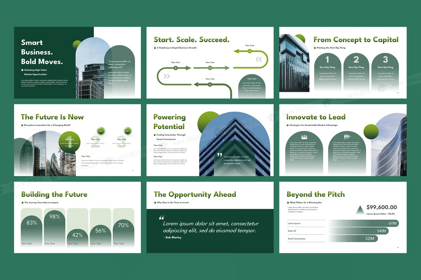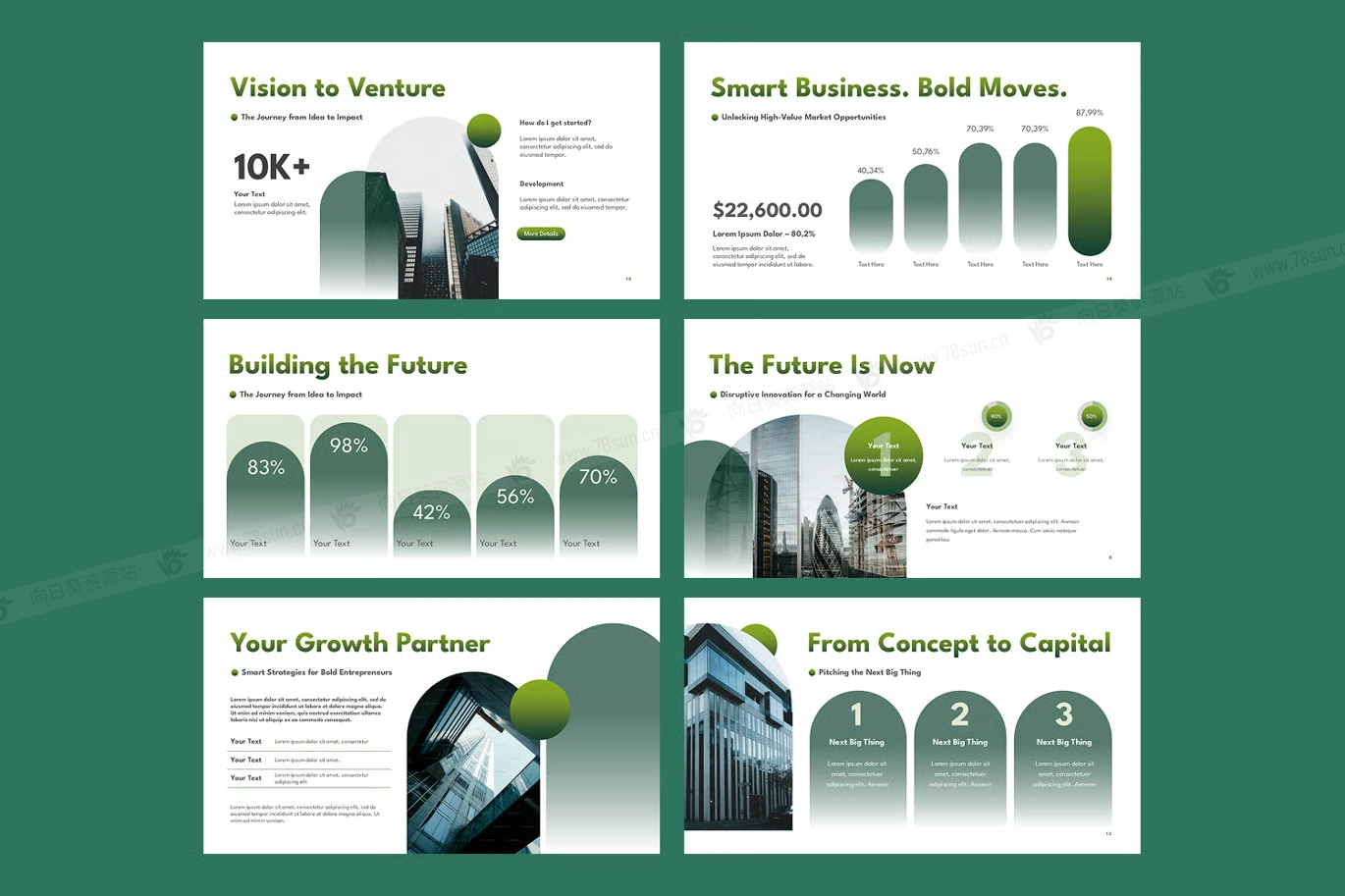 商务公司简介演示PowerPoint幻灯片模板。它以清晰引人注目的标题幻灯片开头,通常包括公司名称、徽标、标语和演示者详细信息。该流程通常从问题陈述开始,概述现实世界的挑战或未满足的需求,然后是提出的解决方案——突出产品、服务或创新。