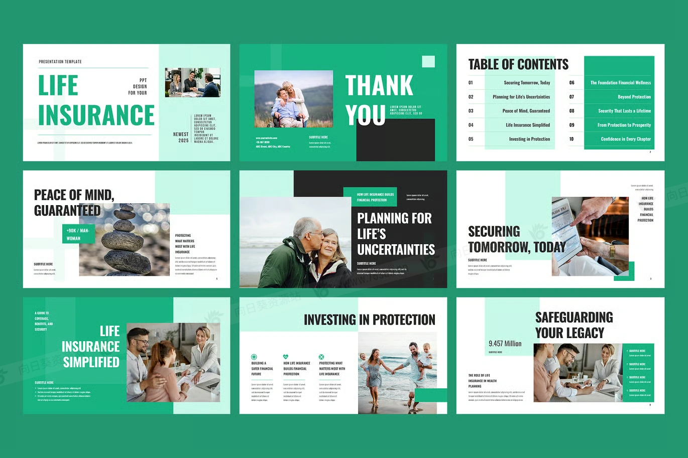 人寿保险演示PowerPoint幻灯片模板。旨在清晰地解释和推广保险计划、财务保护和长期安全。它包括公司介绍、保单类型、人寿保险福利、保费计划、承保范围详细信息、索赔流程、客户评价、财务预测和联系信息部分。该模板采用简洁的布局、信息图表、比较图表和专业视觉效果精心制作,有助于建立受众的信誉和信任。它非常适合保险公司、财务顾问、代理人和公司演示,它是完全可定制的,允许您调整颜色、字体、图像和图形以符合您的品牌。