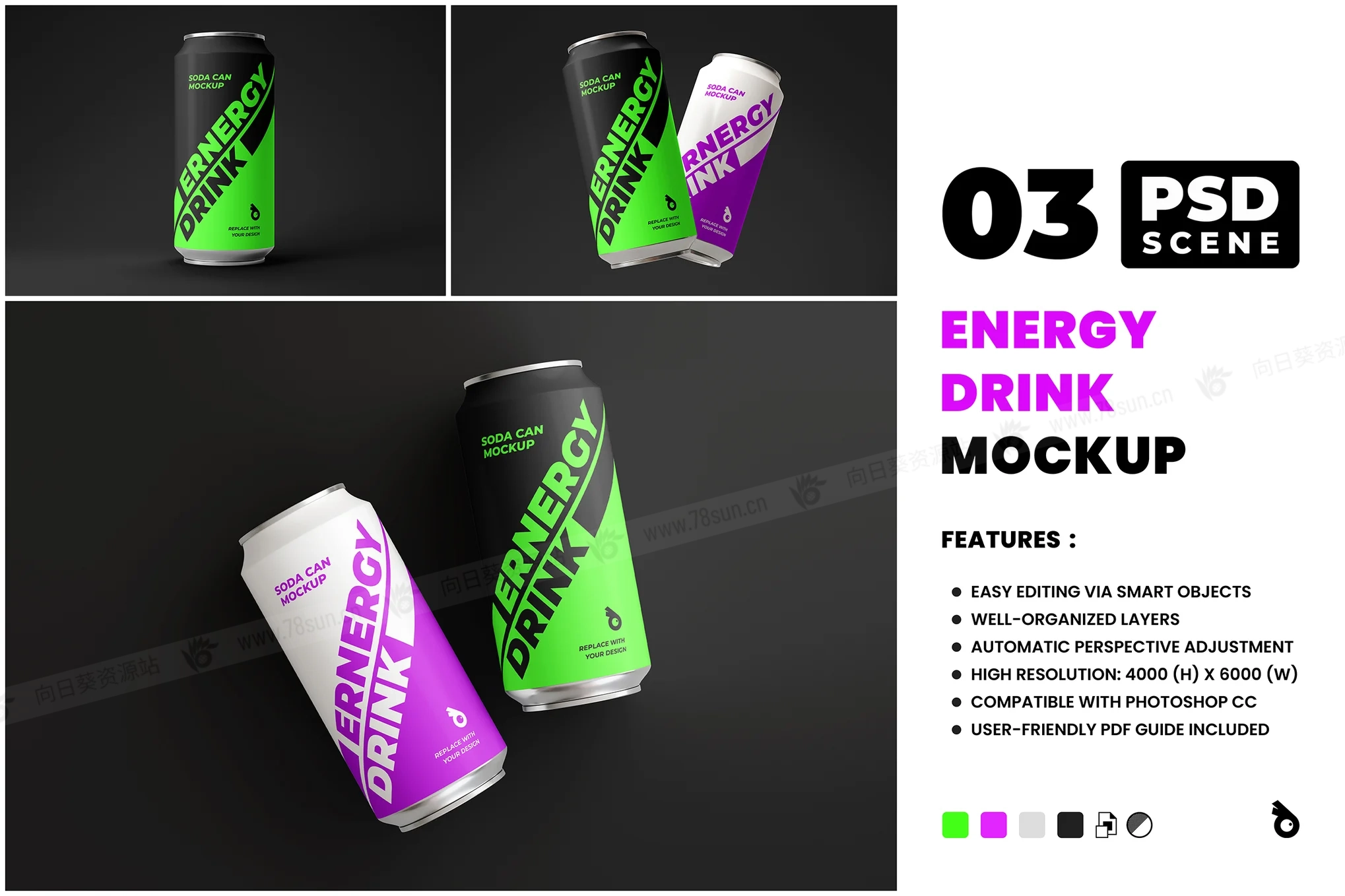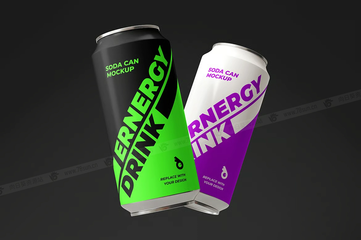 汽水饮料易拉罐头品牌VI效果图展示智能贴图psd设计样机。 智能对象易于使用 – 只需拖放您的图稿即可。 所有颜色元素都是完全可编辑的,每个对象都与背景分开,以实现最大的灵活性。