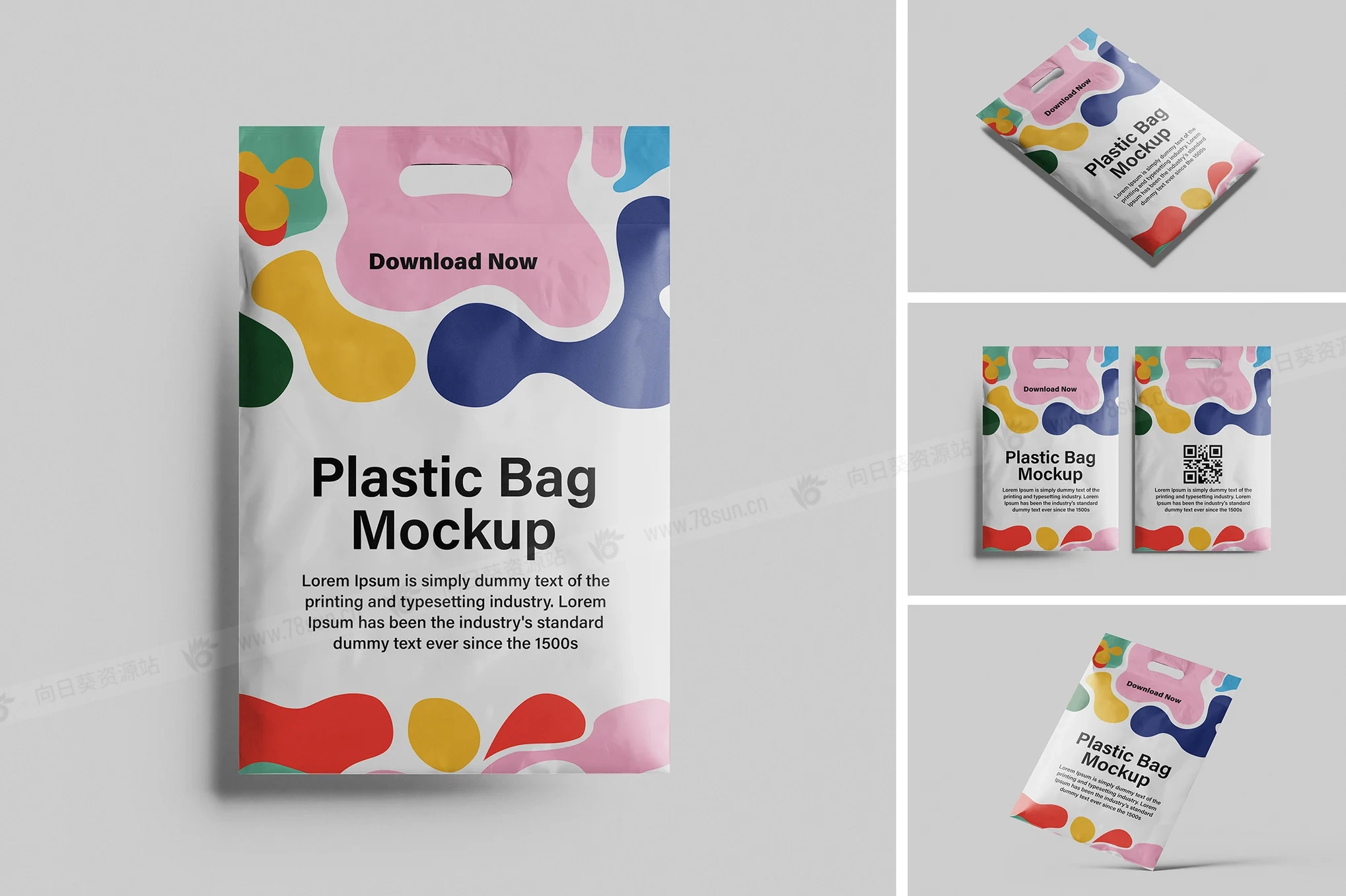 模切手柄塑料袋品牌VI效果图展示智能贴图psd设计样机,该模型包括 04 个带有分层良好 PSD 文件,并且该模型还使用智能对象功能,这意味着您可以在几秒钟内轻松快速地使用自己的设计更改当前设计。