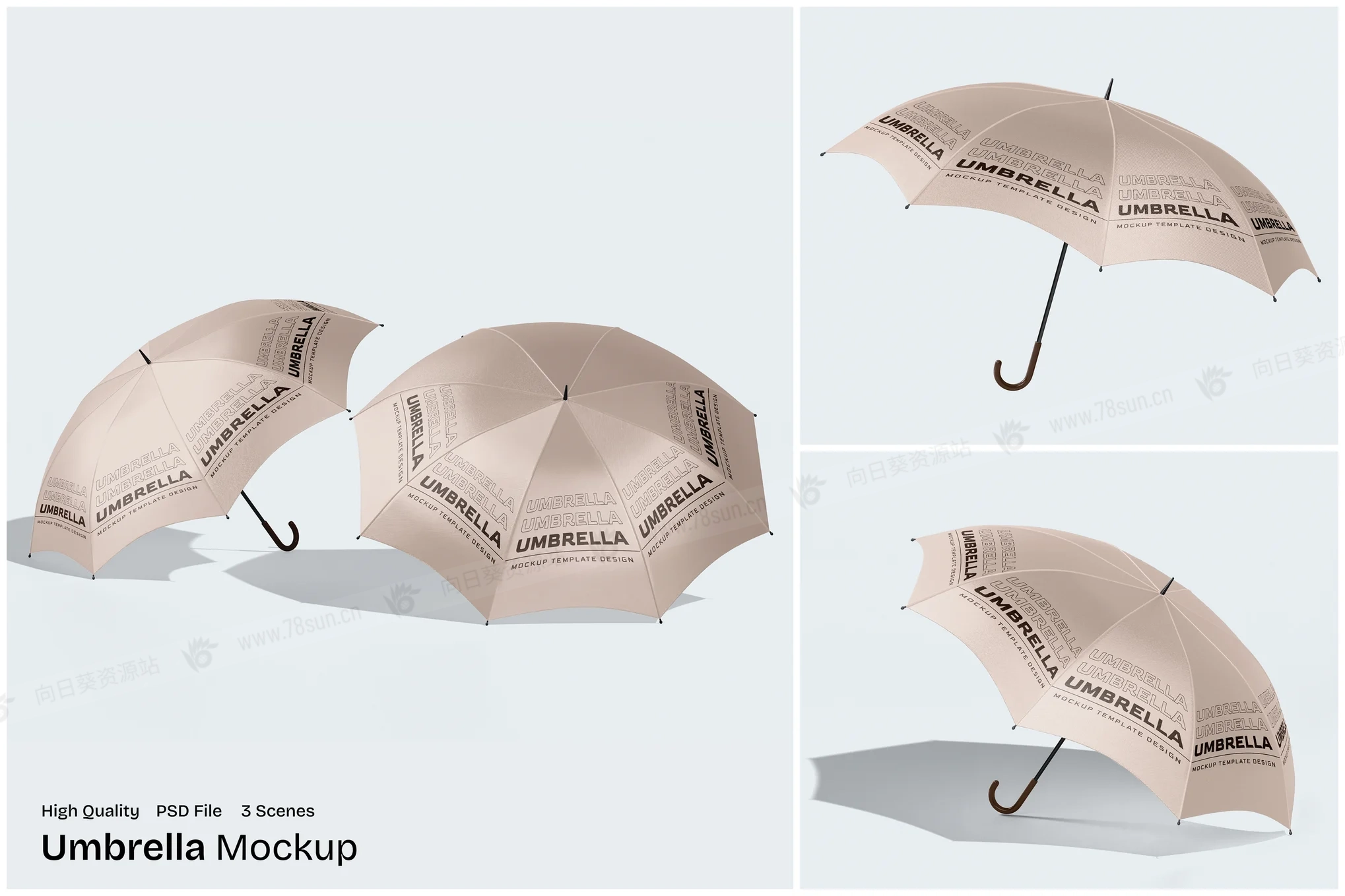 长柄打开的雨伞品牌VI效果图展示智能贴图psd设计样机,