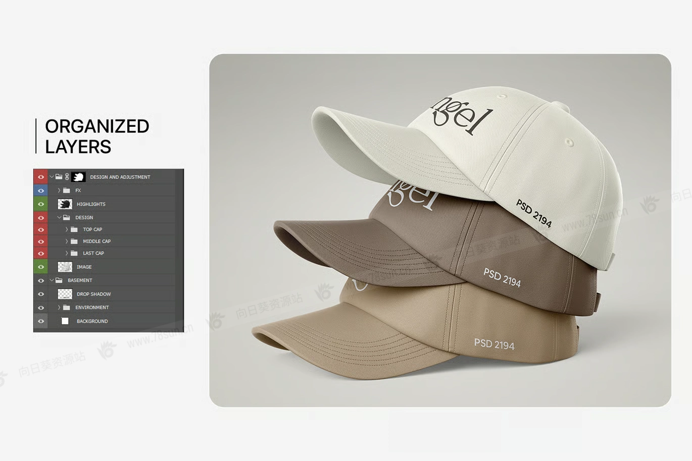 - 逼真的织物纹理和阴影,可编辑的帽子颜色,非常适合品牌、服装和运动设计。