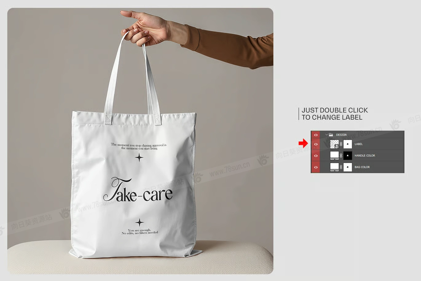 托特包帆布手提袋购物袋品牌VI效果图展示智能贴图psd设计样机。该模型具有完全可定制和可编辑的 PSD 文件,可让您轻松插入您的品牌、徽标、图案或艺术品,使其成为时尚品牌、环保包装和企业形象的理想选择。该模型提供了各种自定义选项,包括背景调整和智能对象图层,可以轻松实现精美和专业的最终外观。