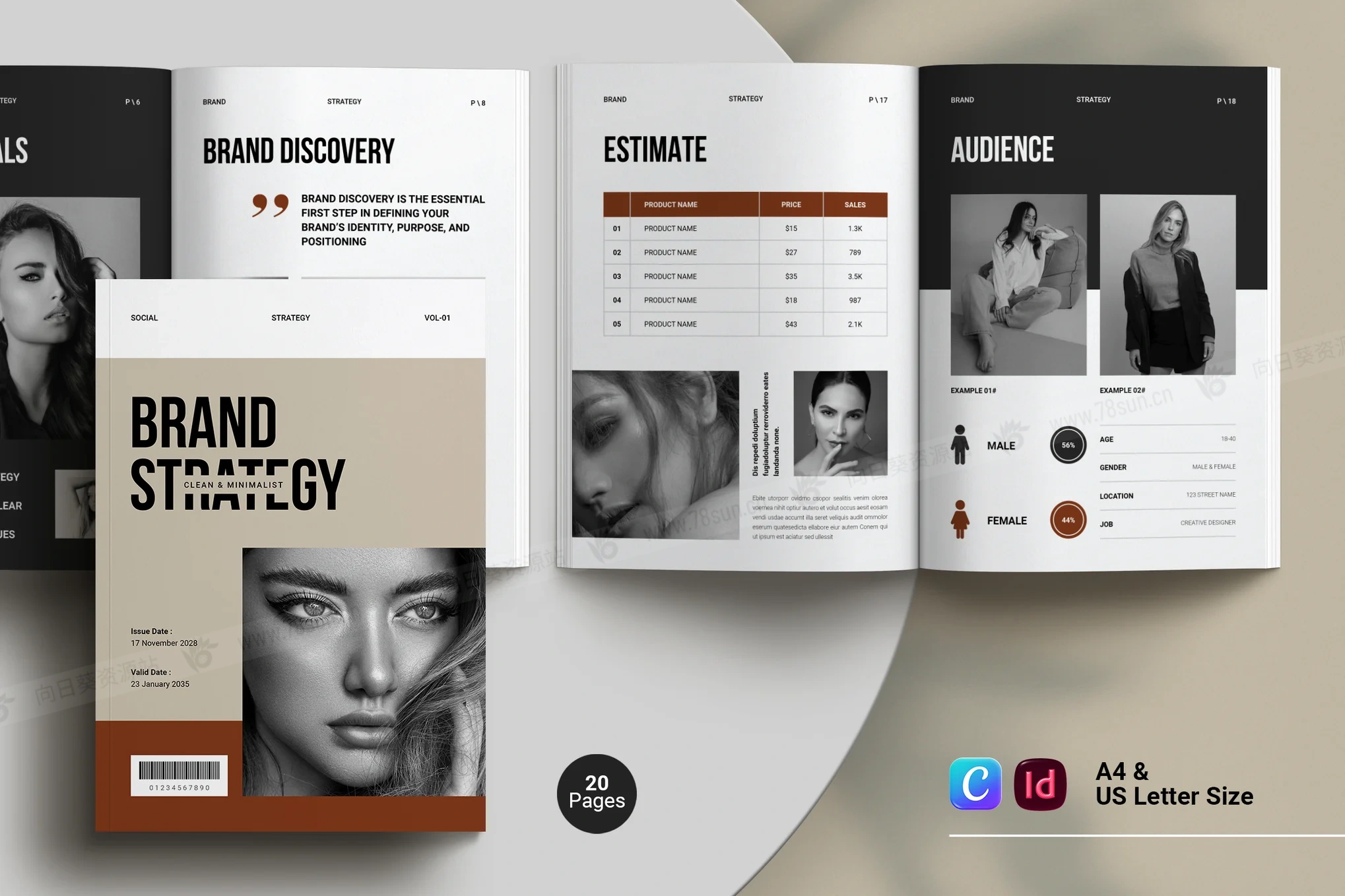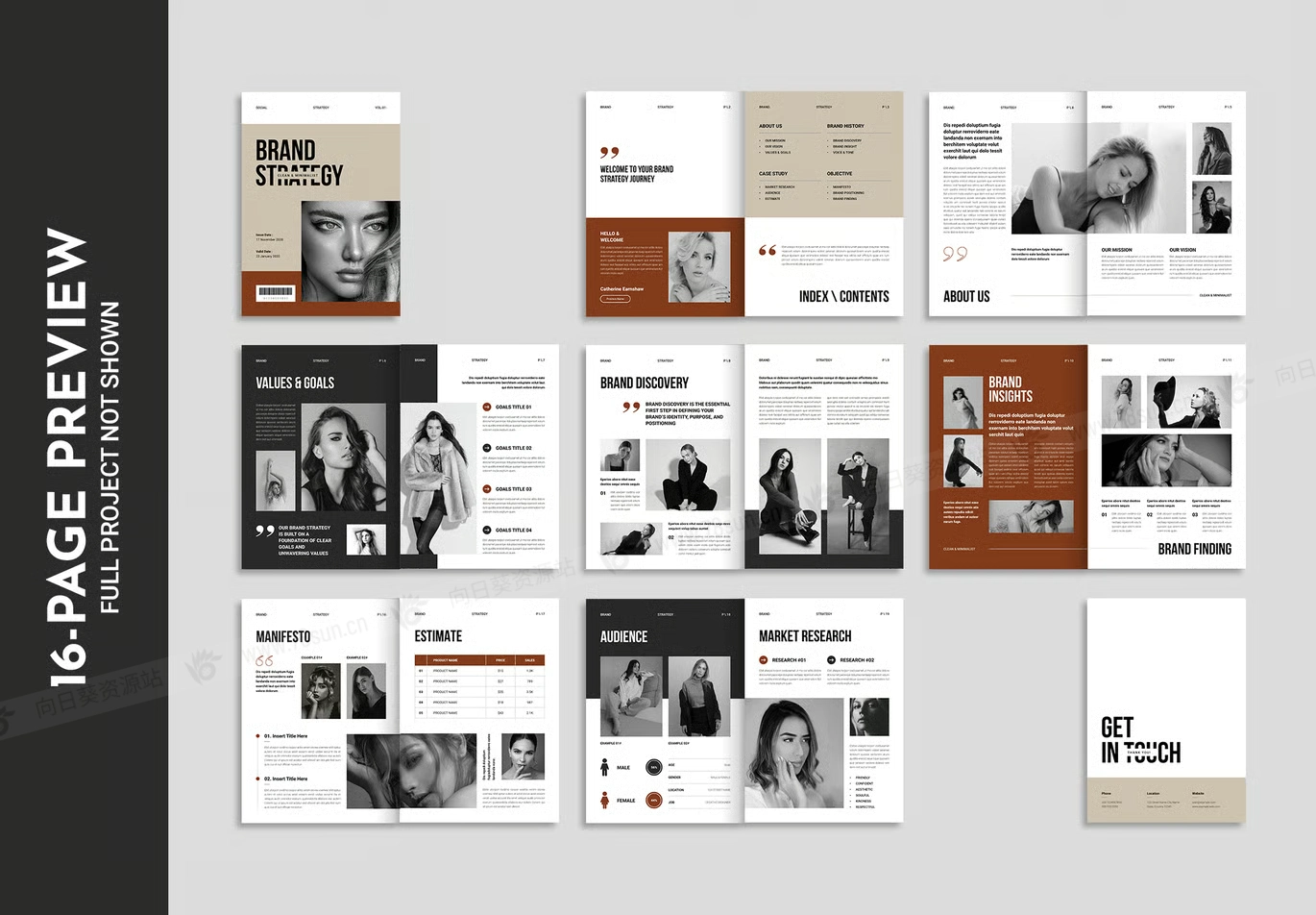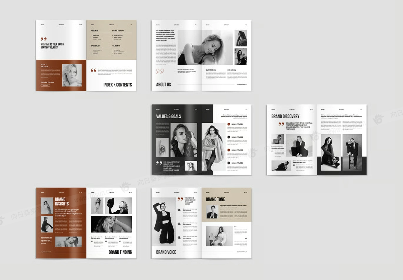 品牌战略指南小册子杂志宣传册画册indd设计模板。这种布局是适合任何项目的目的,非常容易使用和定制。这是很容易定制它,并取代自己的标志和品牌的颜色,