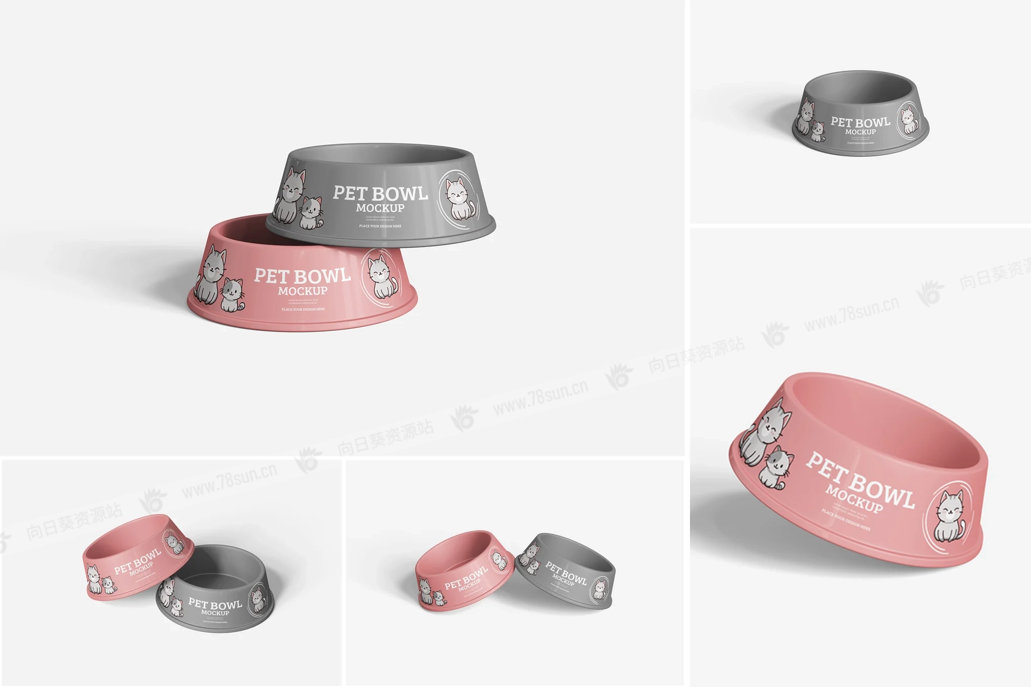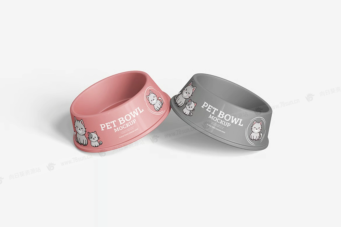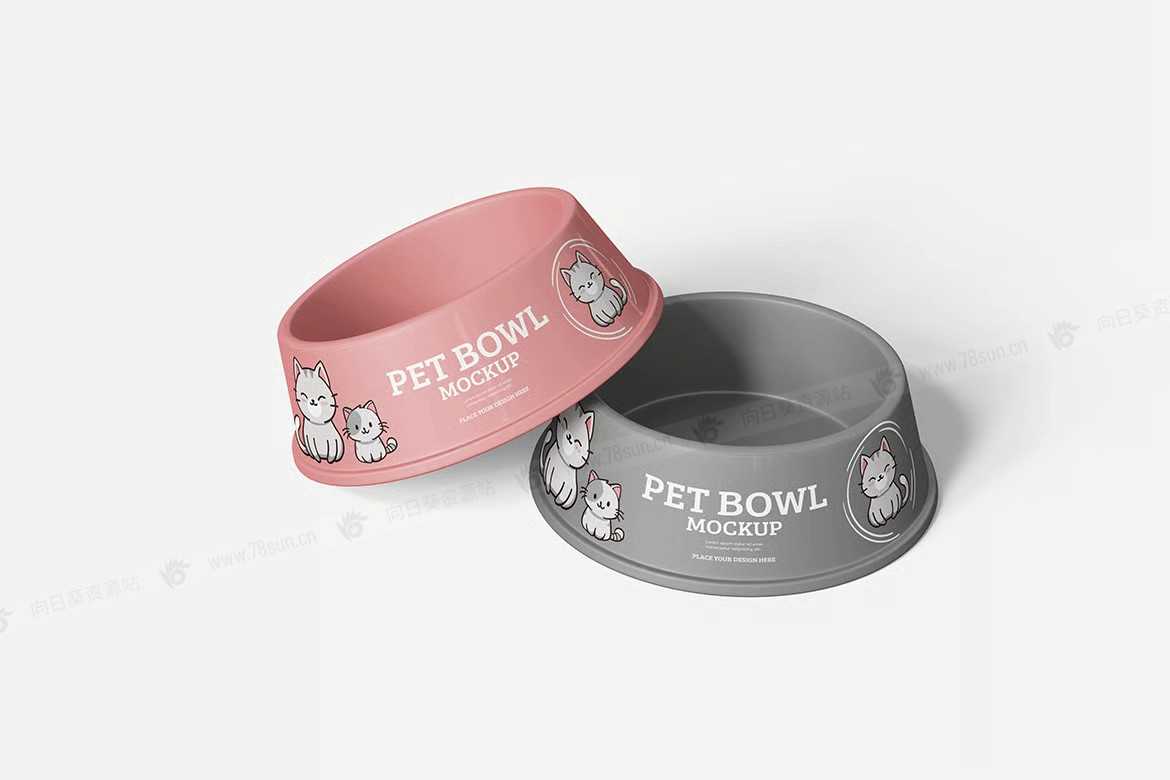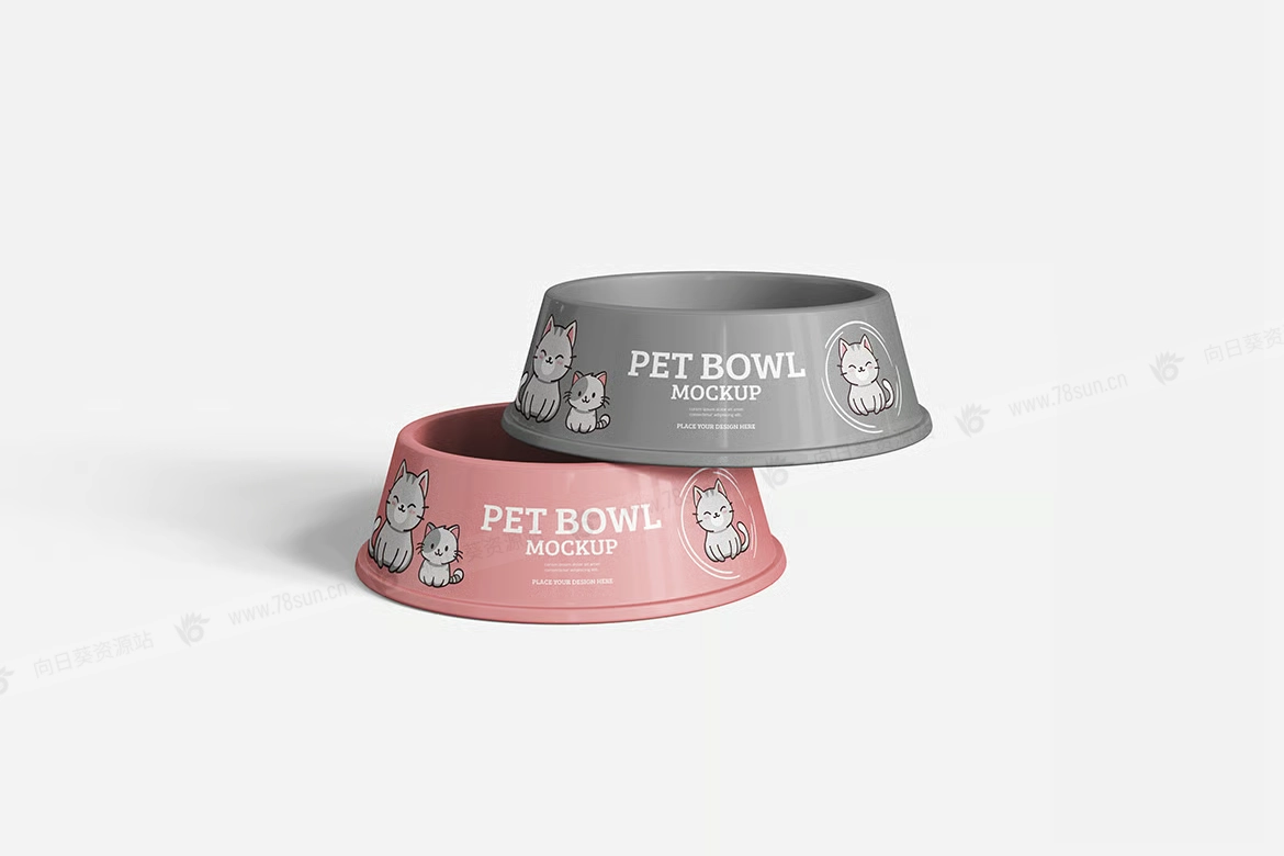 宠物碗品牌VI效果图展示智能贴图psd设计样机。使用智能对象替换您的设计很容易。双击智能图层,复制并粘贴您的图稿,保存,然后就完成了!
