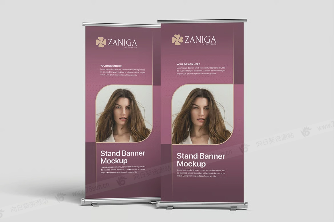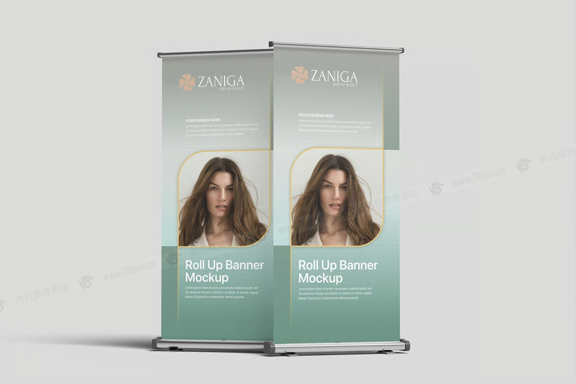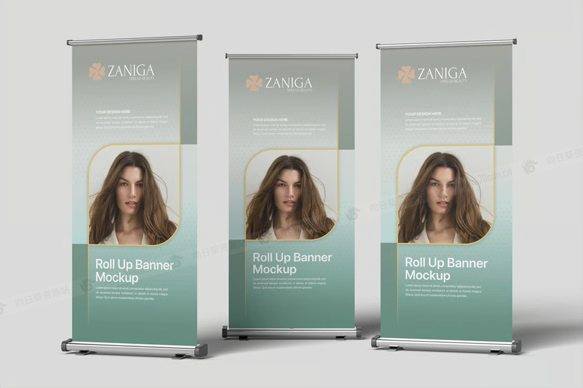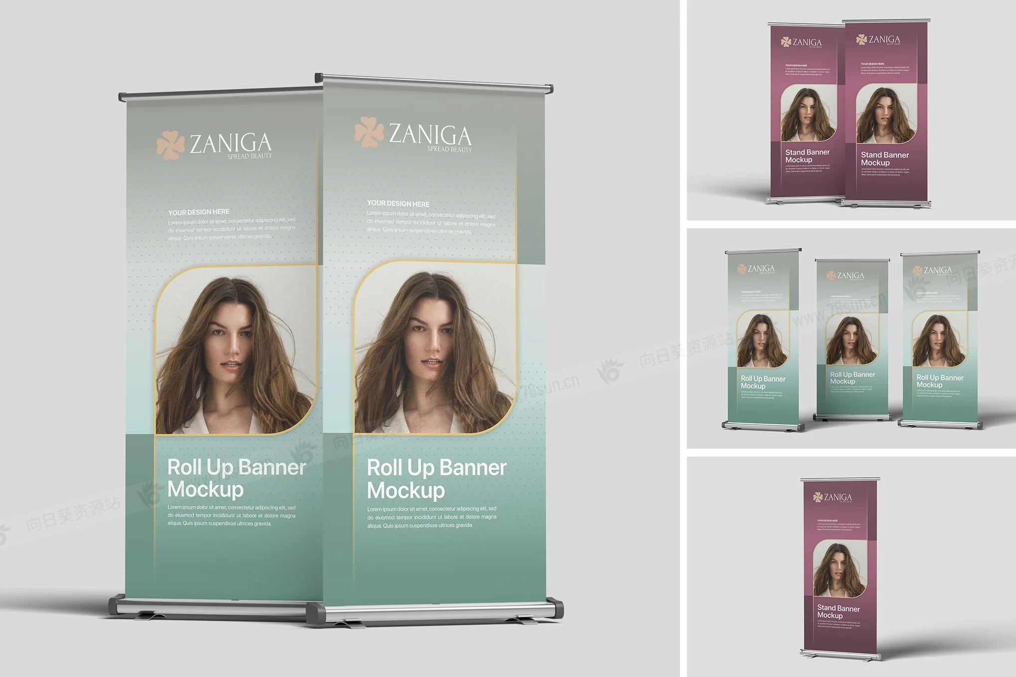 展架易拉宝品牌VI效果图展示智能贴图psd设计样机。只需使用智能对象拖放您的设计即可轻松定制。
