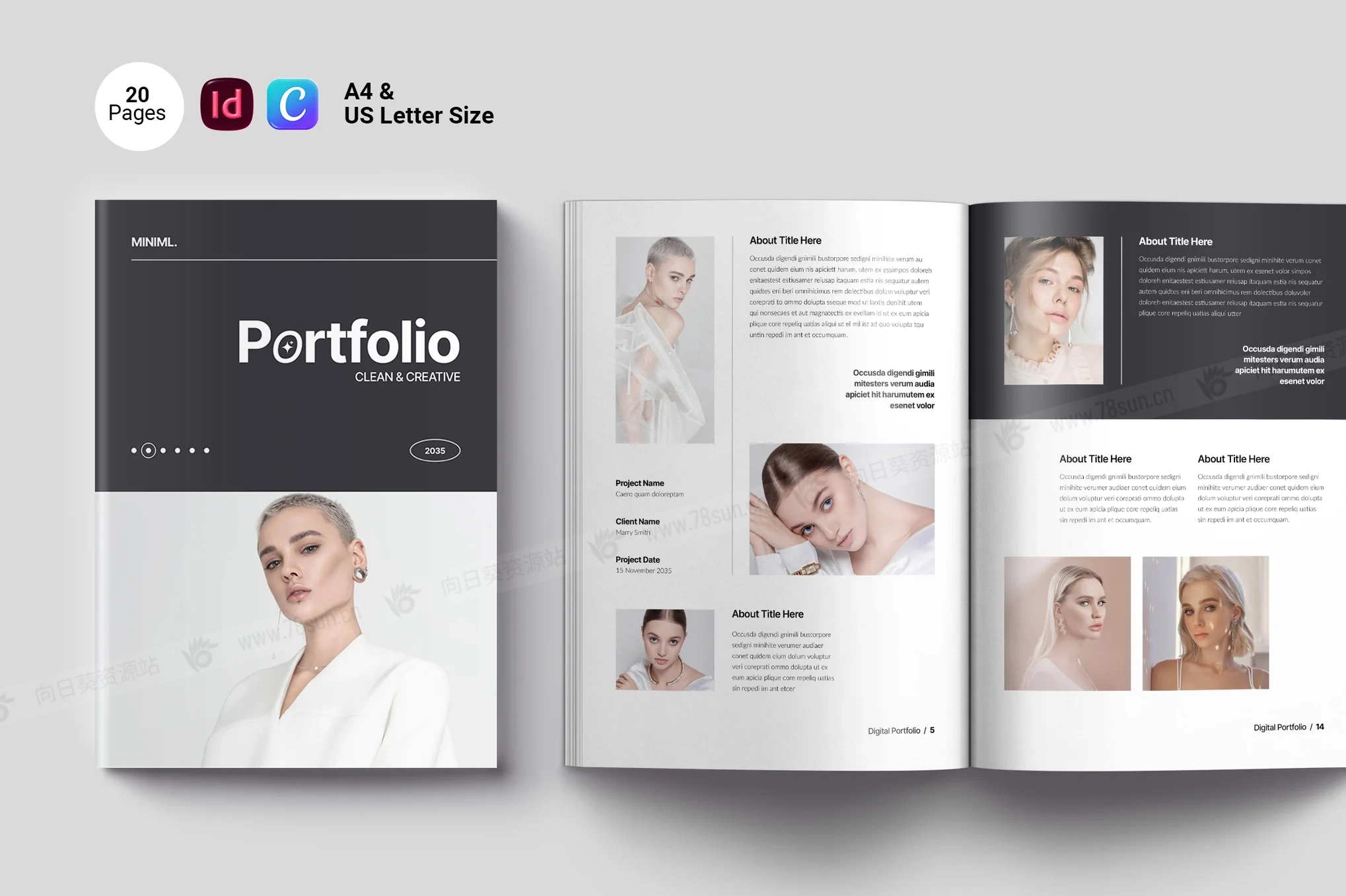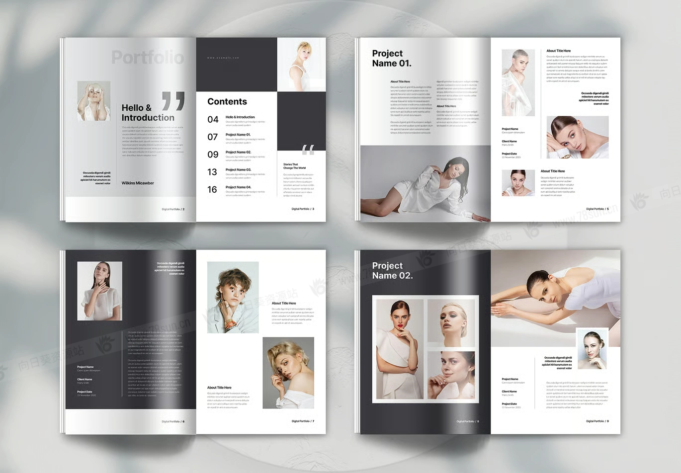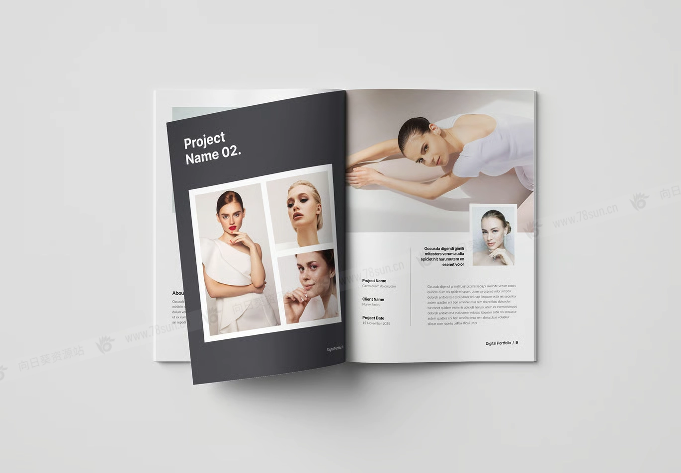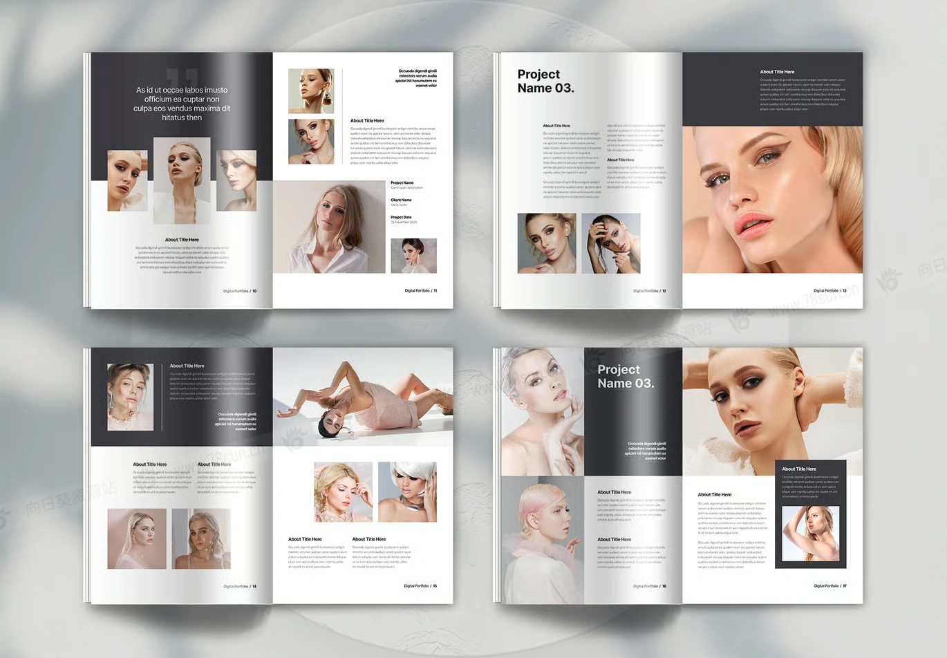 时尚摄影作品集小册子杂志宣传册画册indd设计模板,完全可编辑且易于自定义。您可以轻松更改颜色、字体、图像和文本以匹配您的品牌风格。