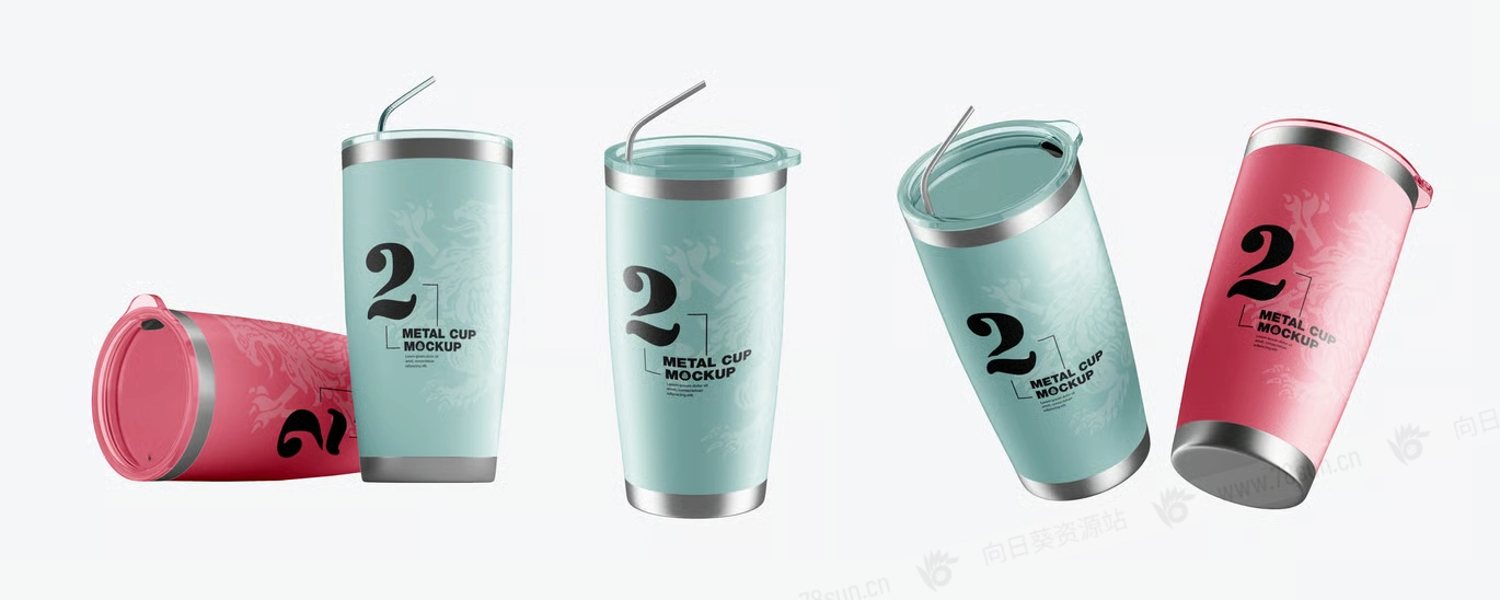 不锈钢杯保温杯水杯品牌VI效果图展示智能贴图psd设计样机,