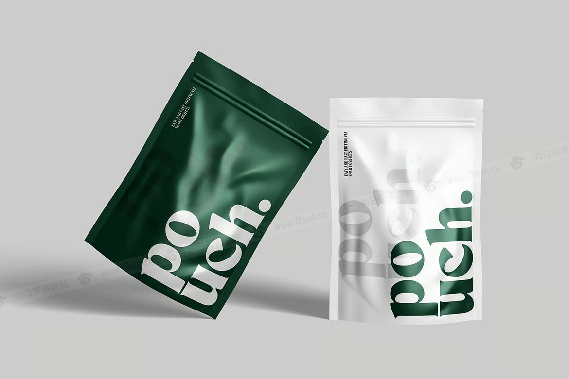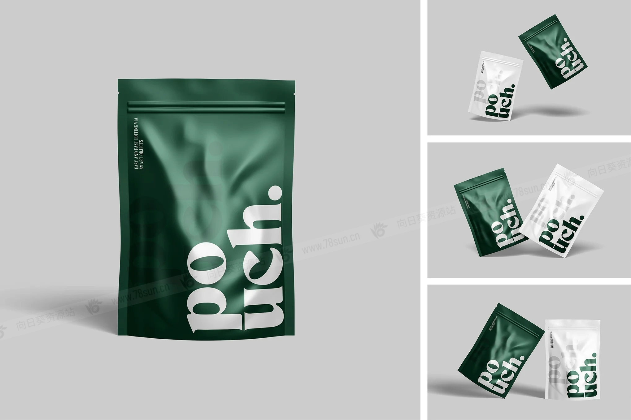 站立式拉链锁袋小袋品牌VI效果图展示智能贴图psd设计样机。该模型包括 6 个带有分层良好 PSD 文件,并且该模型还使用智能对象功能,这意味着您可以在几秒钟内轻松快速地使用自己的设计更改当前设计。