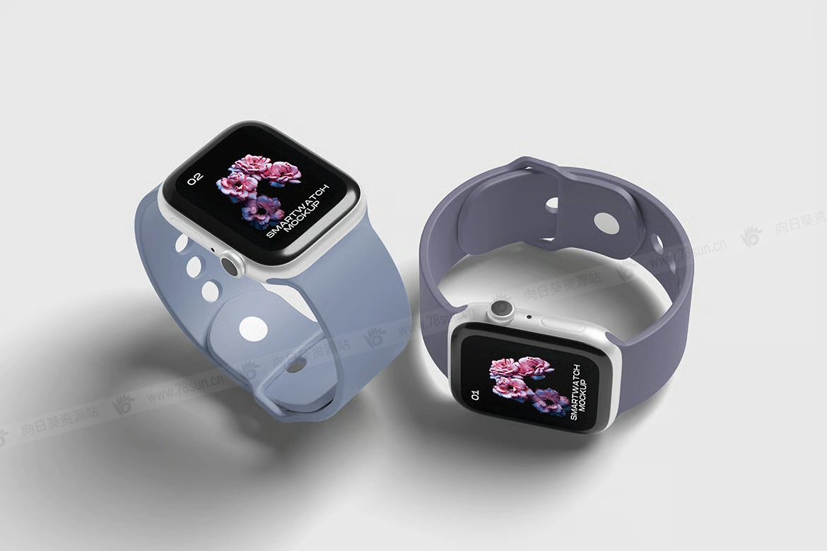Watch数字智能手表UI设计效果图展示智能贴图psd设计样机,用于在智能手表屏幕上展示您的应用程序或产品。该模型是完全可定制的,允许您调整颜色、阴影和背景以满足您的需求。