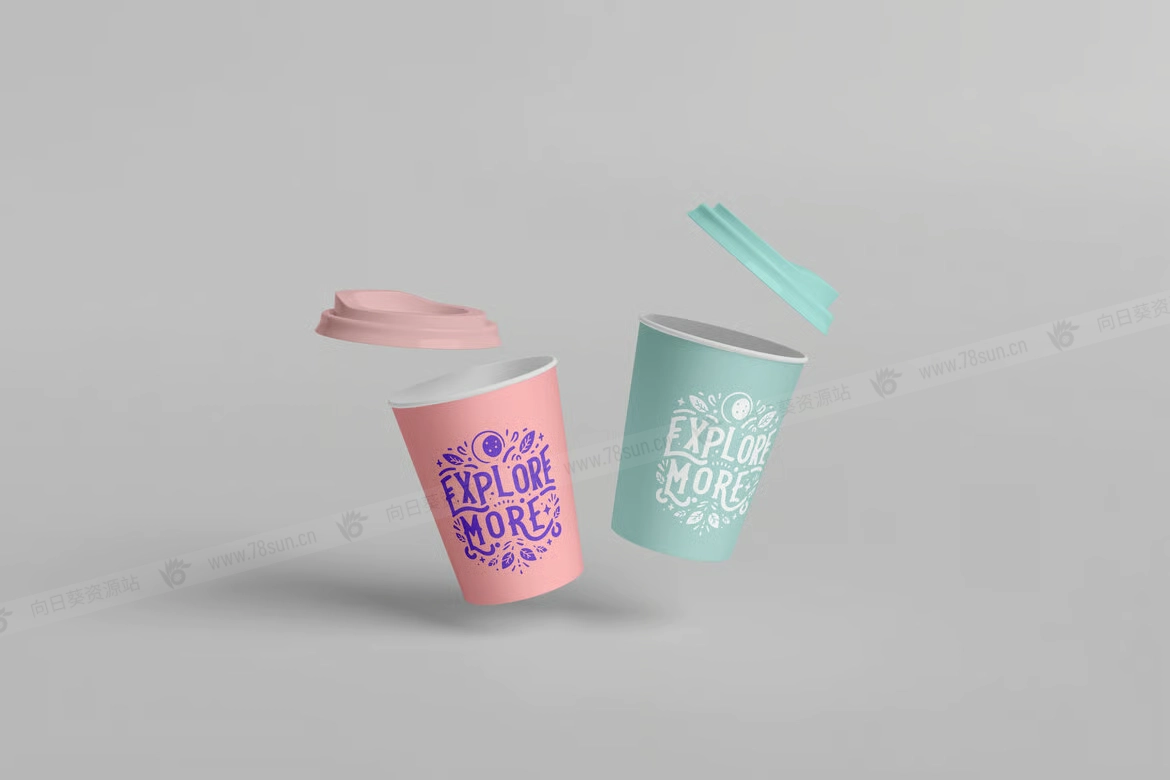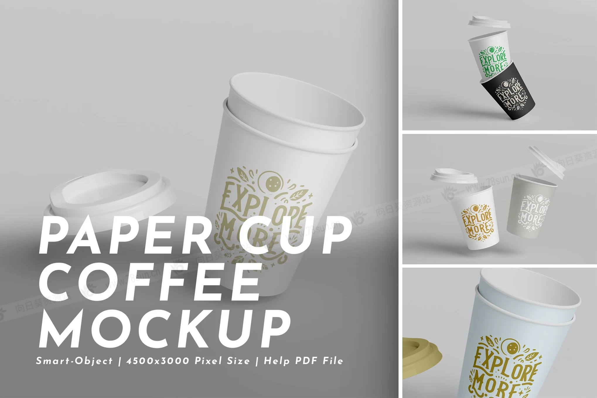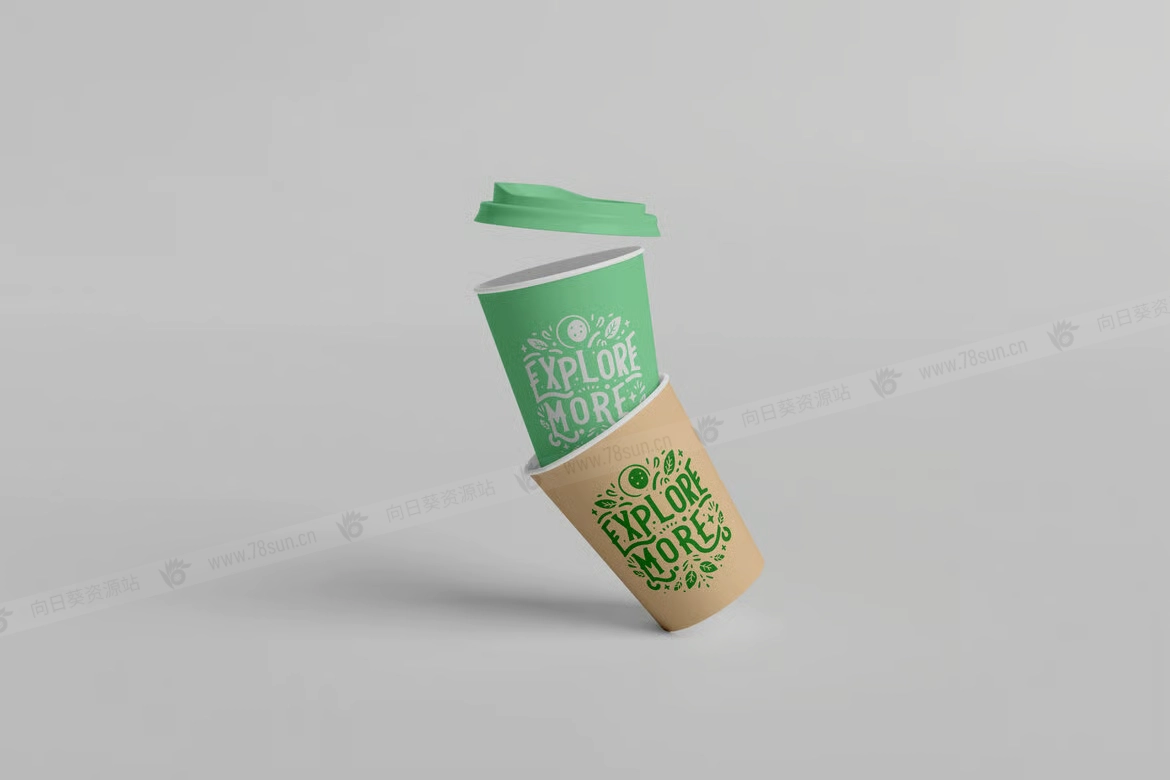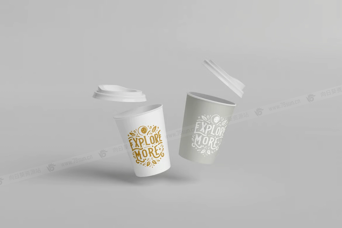 纸杯咖啡杯品牌VI效果图展示智能贴图psd设计样机。使用 Photoshop 中的智能对象功能可以轻松应用。因此,您可以在几秒钟内放置您的设计。模型是用结构良好的图层创建的。