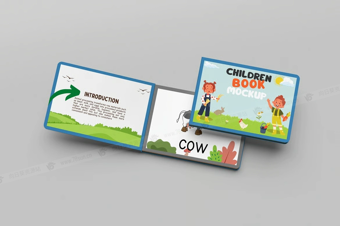 精装儿童图书书籍封面内页品牌VI效果图展示智能贴图psd设计样机。此 PSD 文件使用智能对象功能,因此您可以轻松快速地更改模型内容。很简单!您只需双击智能对象,粘贴您的图稿,保存它,然后就完成了。