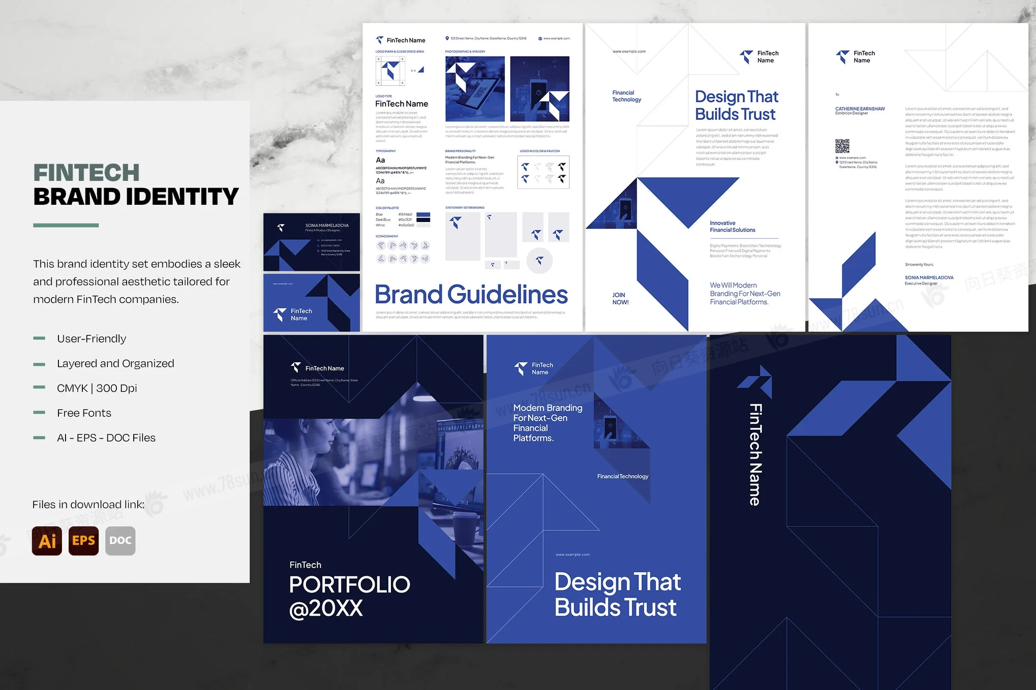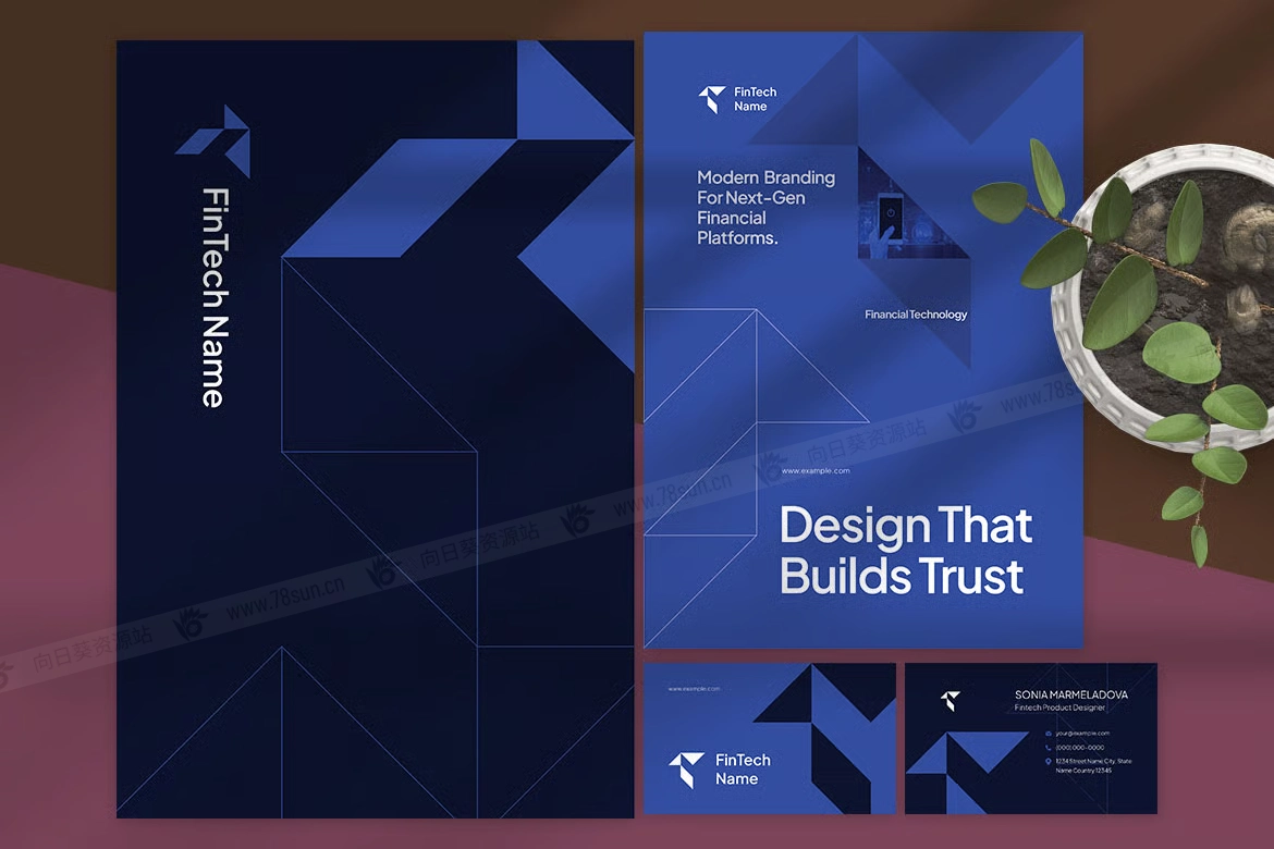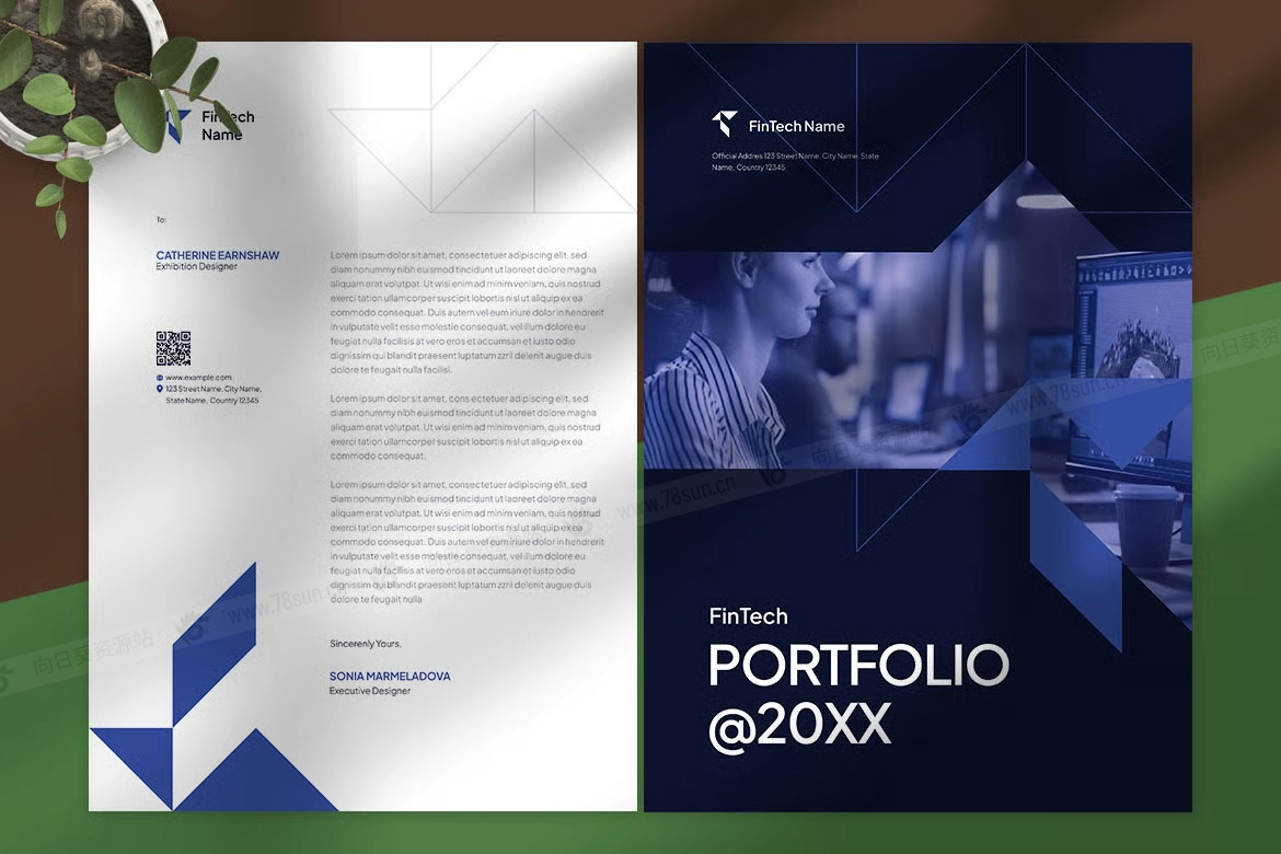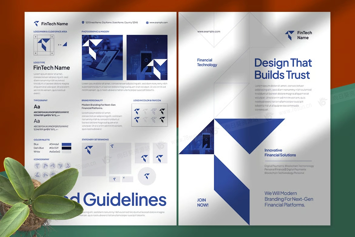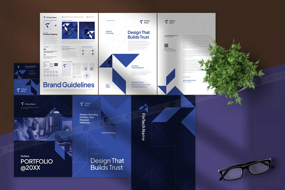 现代金融科技品牌标识集小册子杂志宣传册画册ai设计模板。它具有简洁的布局、几何元素和精致的排版,