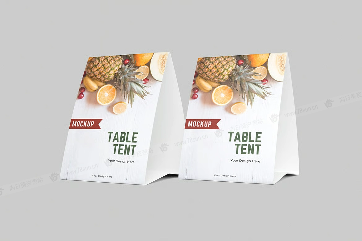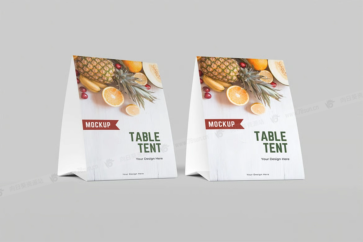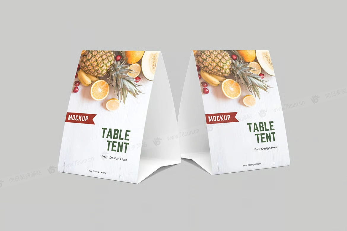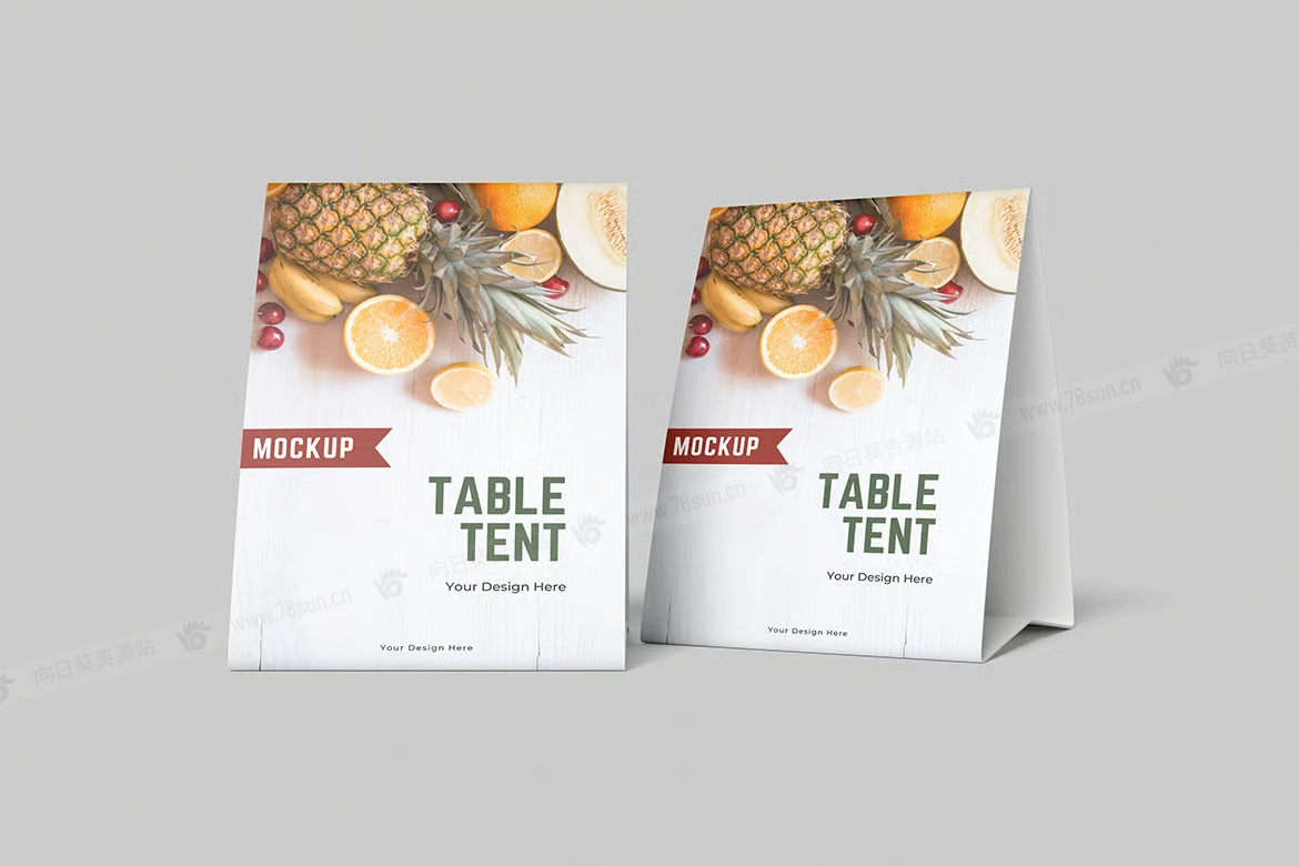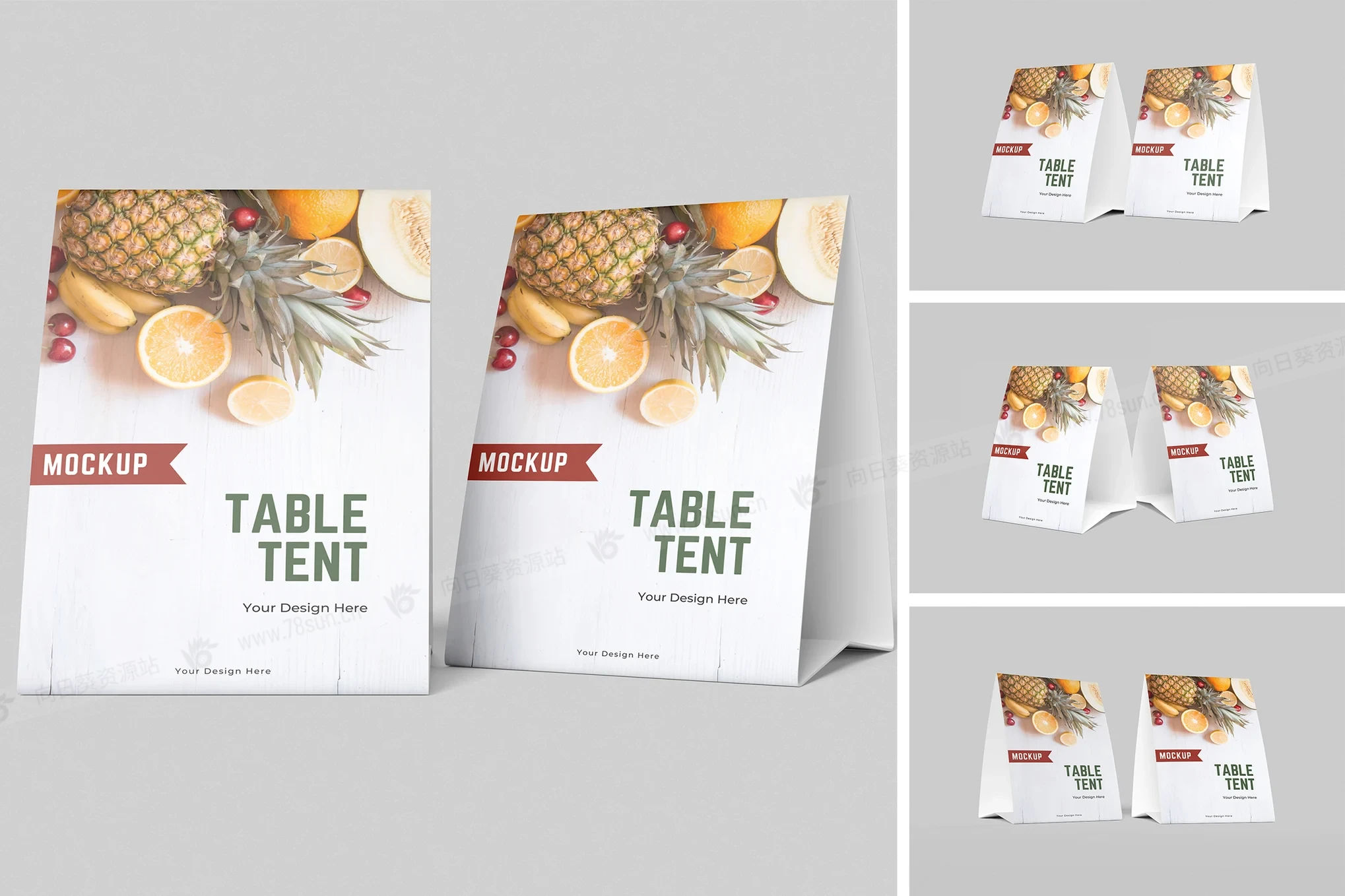 桌面帐篷卡品牌VI效果图展示智能贴图psd设计样机,该模型包括 04 个带有分层良好 PSD 文件,并且该模型还使用智能对象功能,这意味着您可以在几秒钟内轻松快速地使用自己的设计更改当前设计。