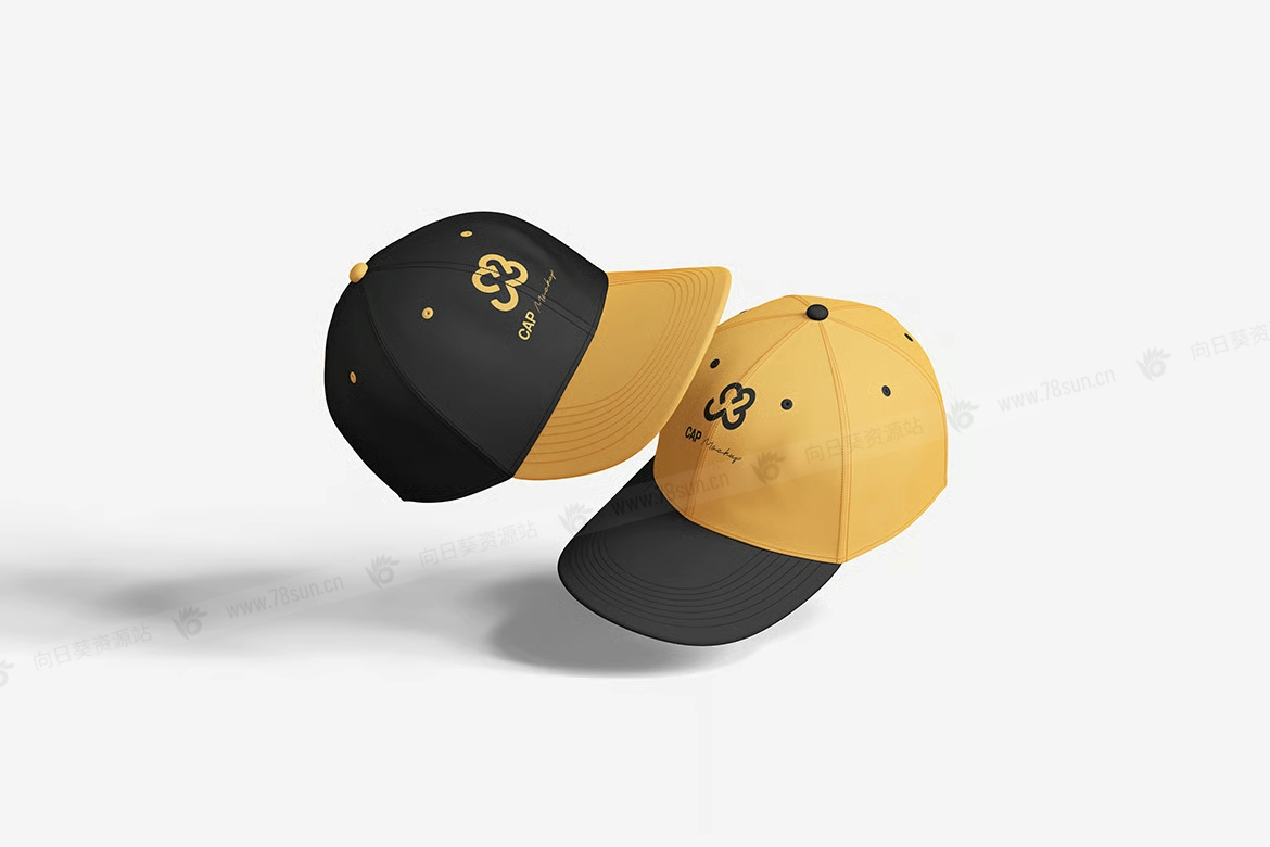 帽檐棒球帽子品牌VI效果图展示智能贴图psd设计样机。使用智能对象轻松替换为您的设计,双击智能图层,复制并粘贴您的图稿。 包含精心组织的 PSD 文件,具有结构良好的图层。