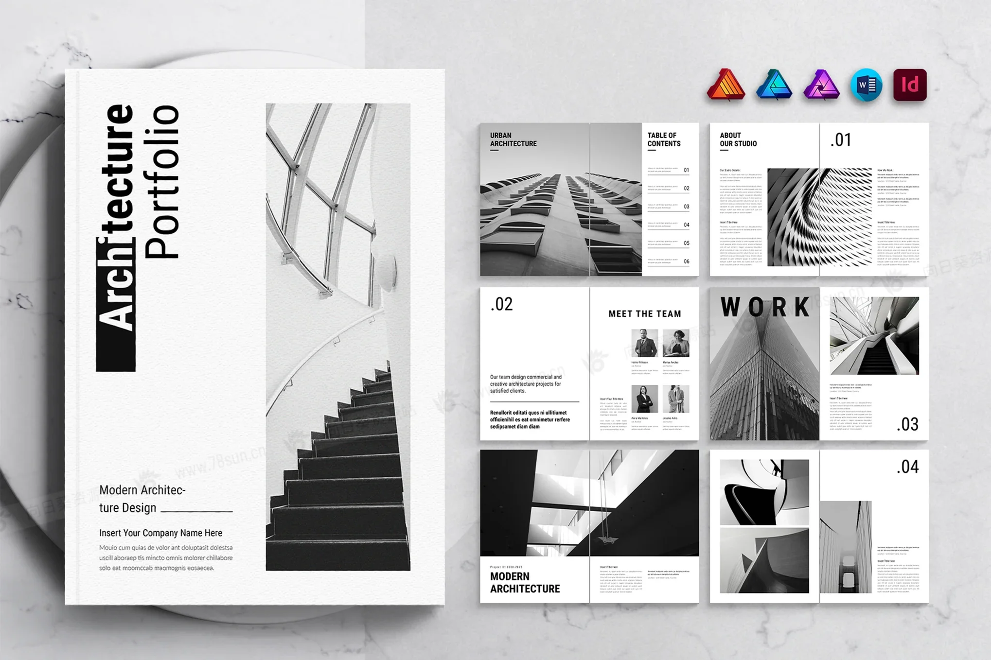建筑房地产摄影作品集小册子杂志宣传册画册indd docx pdf设计模板。它是在 Adobe InDesign、Microsoft Word 和 Affinity Suite(Affinity Publisher、Affinity Designer 和 Affinity Photo)中创建的,包含 16 页的文档。此模板适用于建筑、建筑组合、房地产、房地产、建筑手册和多用途组合。它有两种尺寸,A4 和美国信纸尺寸。您可以轻松更改图像、字体和颜色。它是完全可定制的,以适应您品牌的颜色和企业字体。