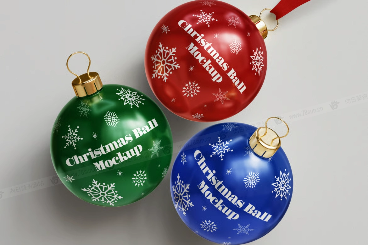 圣诞球节日装饰品牌VI效果图展示智能贴图psd设计样机。该包包括 3 个高分辨率 PSD 文件(4000×3000 像素,300 DPI)和智能对象图层,可快速轻松地进行自定义。每个模型都有红色、蓝色和绿色的逼真圣诞球,配有反光表面、金属帽和挂带。 您可以轻松更改颜色、添加设计或调整背景以适应您的创意愿景。
