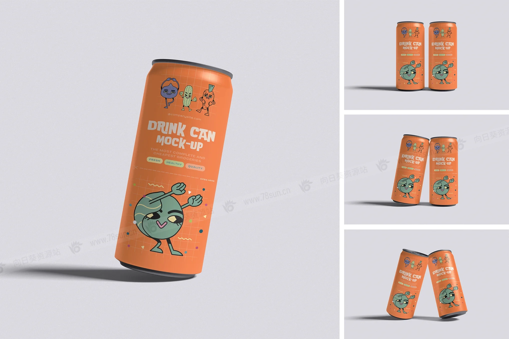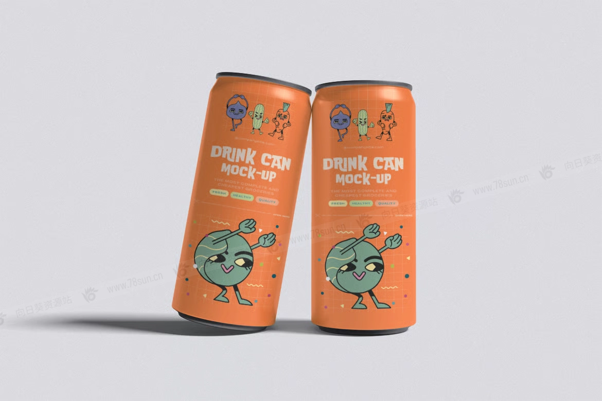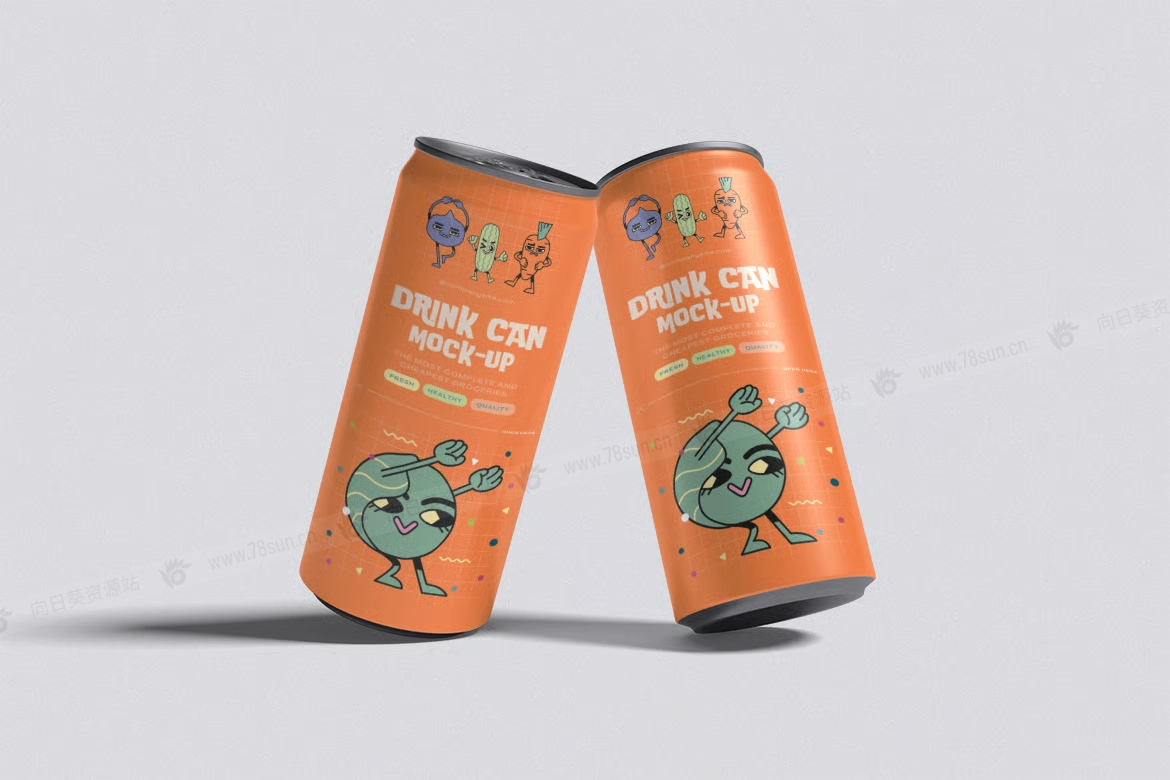 汽水饮料易拉罐头品牌VI效果图展示智能贴图psd设计样机,该模型包括 04 个带有分层良好 PSD 文件,并且该模型还使用智能对象功能,这意味着您可以在几秒钟内轻松快速地使用自己的设计更改当前设计。